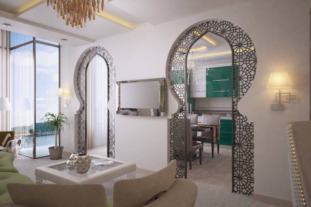 Другой вариант — восточные арки. Их очертания часто ассиметричные или даже немного вычурные. Они сложны и многогранны, как и вся восточная культура.
