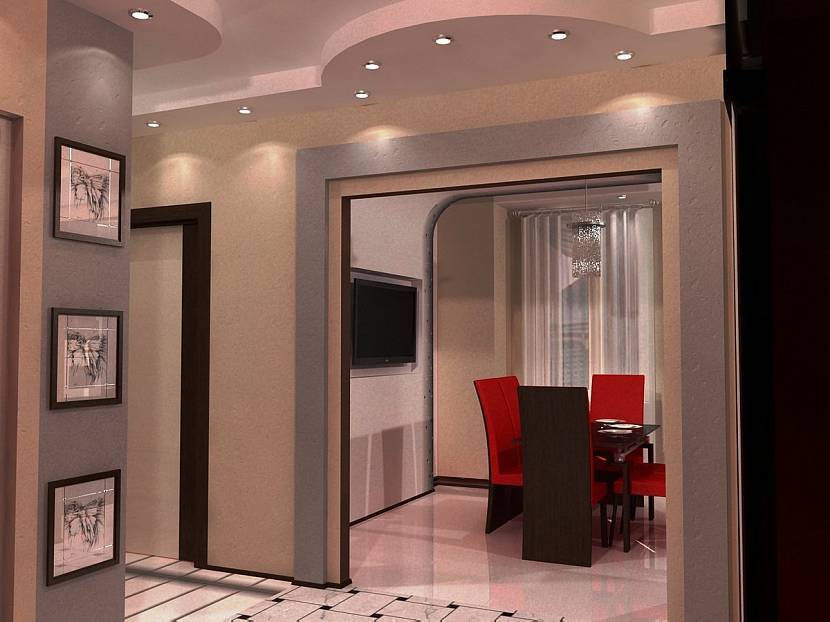 Визуальное увеличение площади достигается расширением проёма между комнатами. Выполняется оно не только в ширину, но и в высоту.