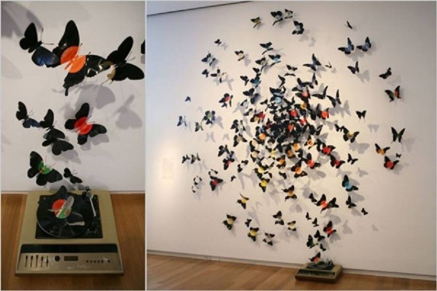- Изготовление изделий из виниловых пластинок. Создать пластиковую бабочку очень сложно, но при определенной сноровке и усердии это становится вполне реальной задачей.