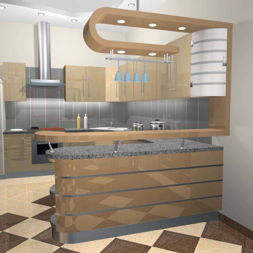 2. Угловая кухня с барной стойкой