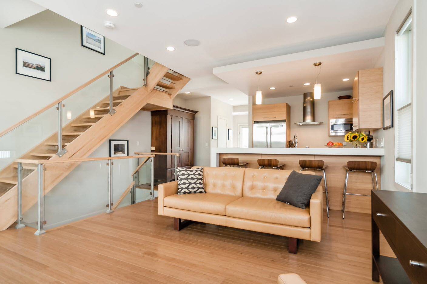 Практичные решения всегда будут пользоваться популярностью в дизайне квартиры или дома. Кухня может быть отделена от гостиной барной стойкой очень креативными способами. Дизайнеры предлагают несколько интересных композиций