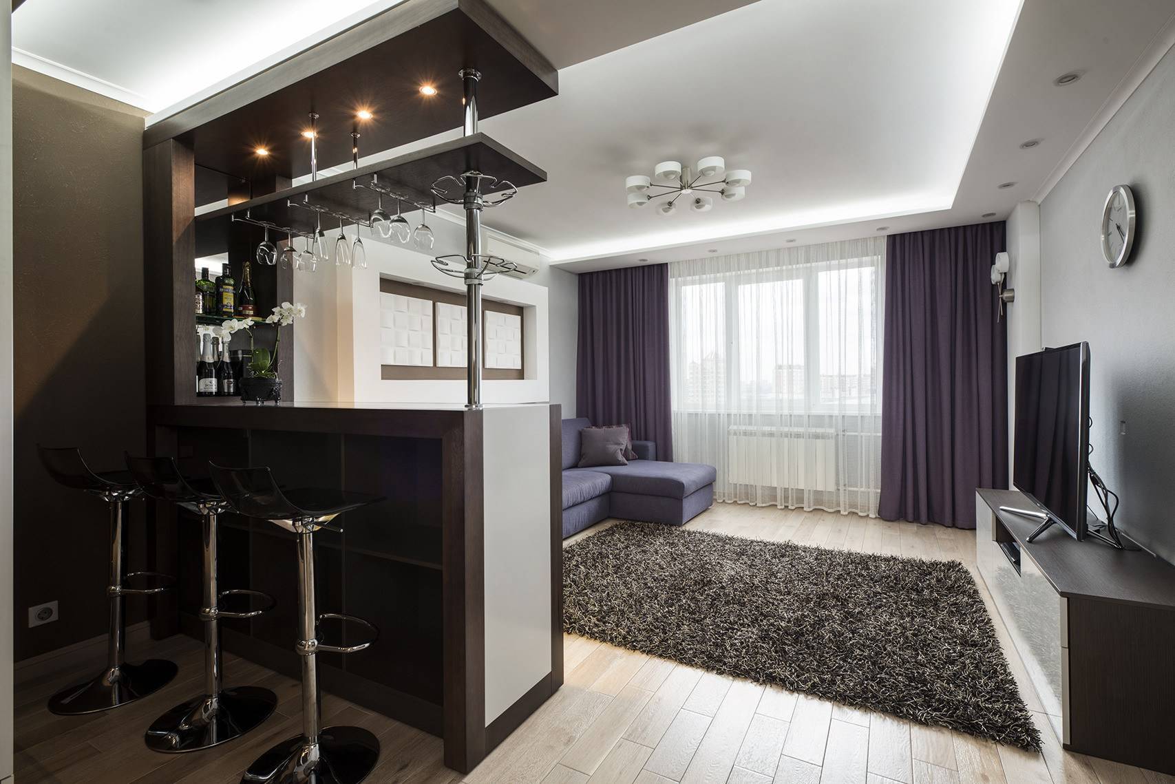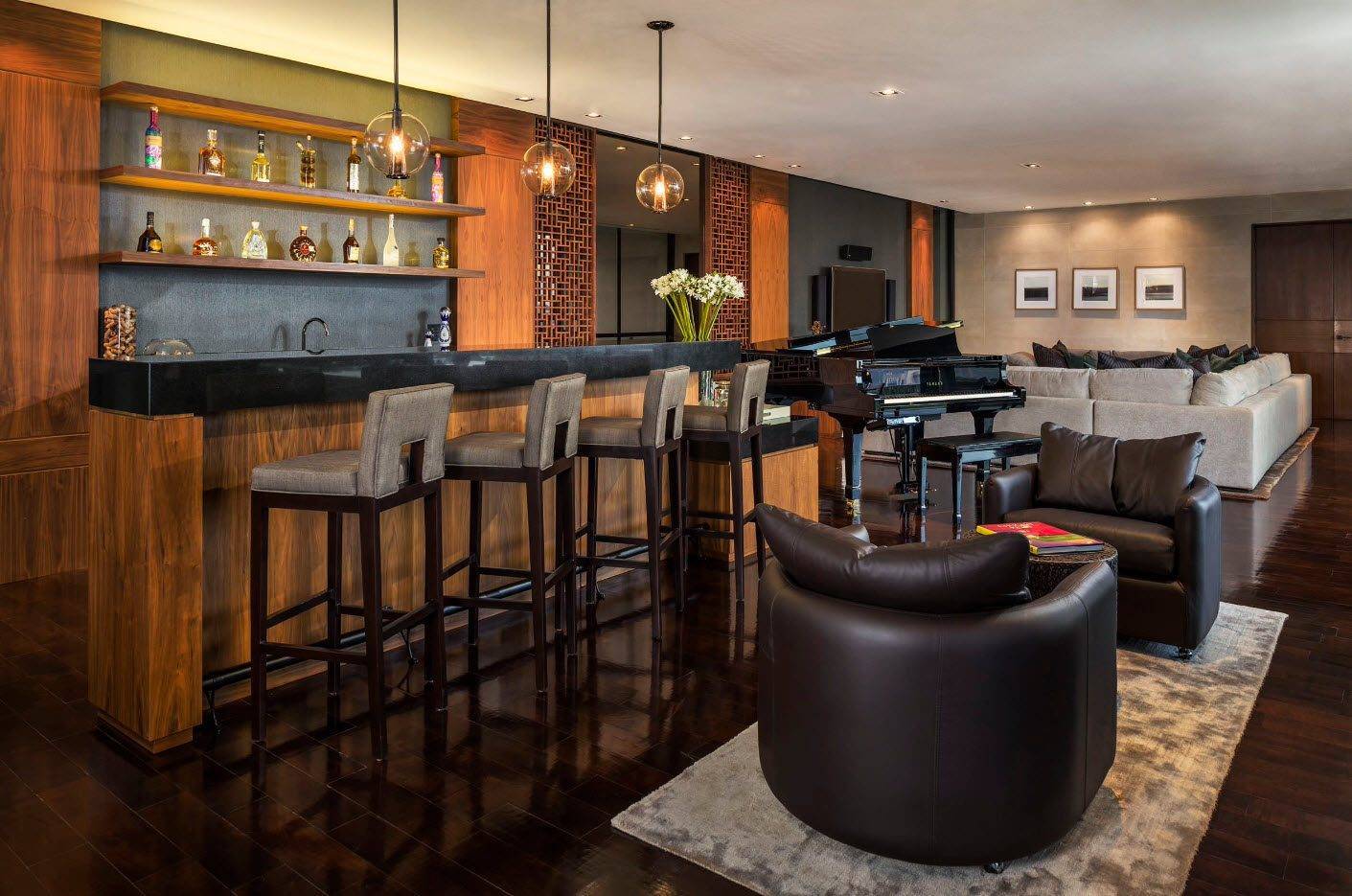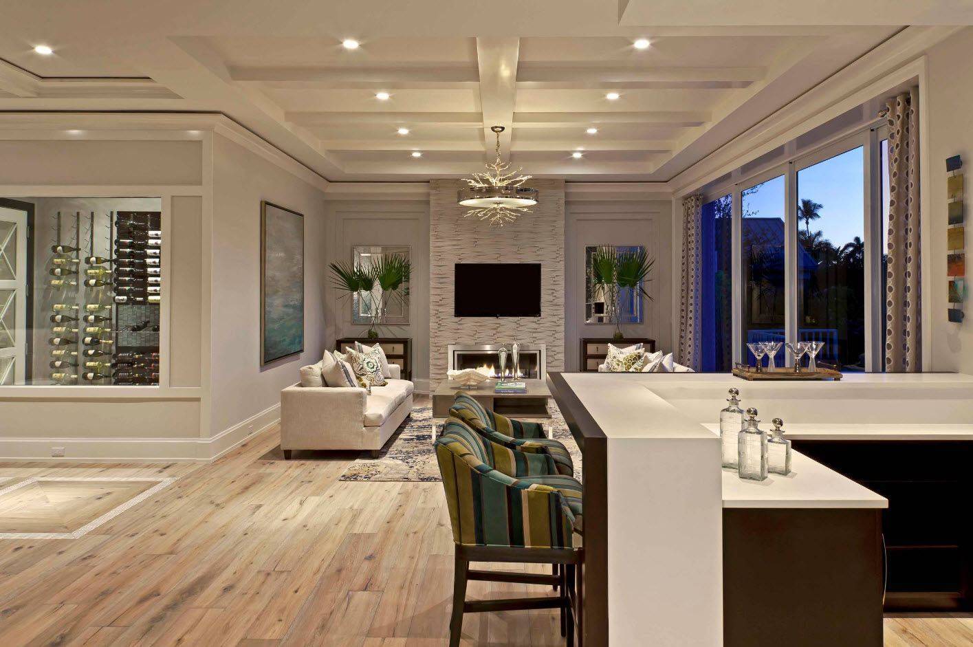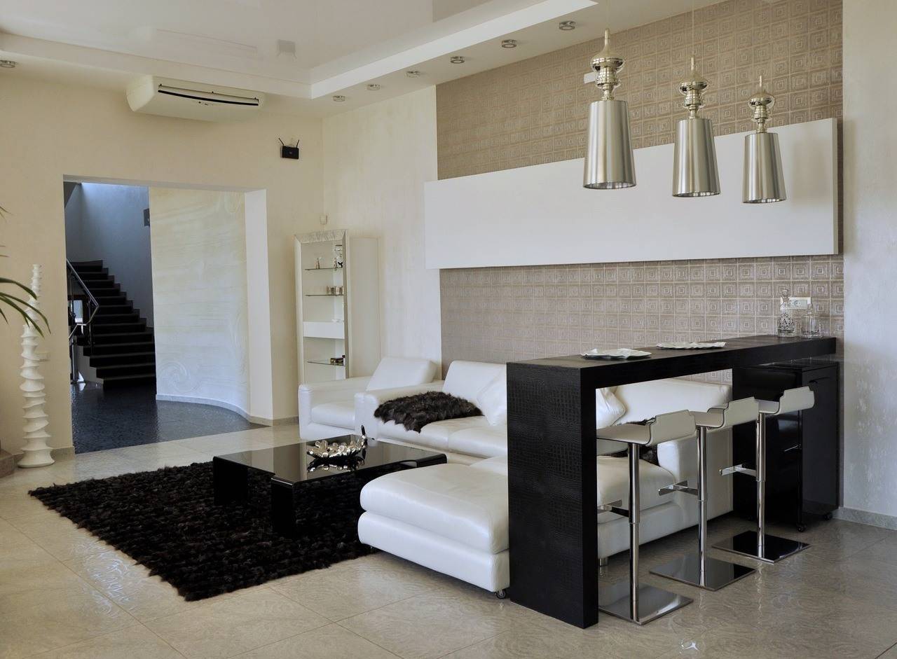 Гостиная с барной стойкой придает квартире совершенно новое предназначение и меняет ее вид, стиль и расширяет возможности дизайна. Сейчас выделяют несколько стилей:
