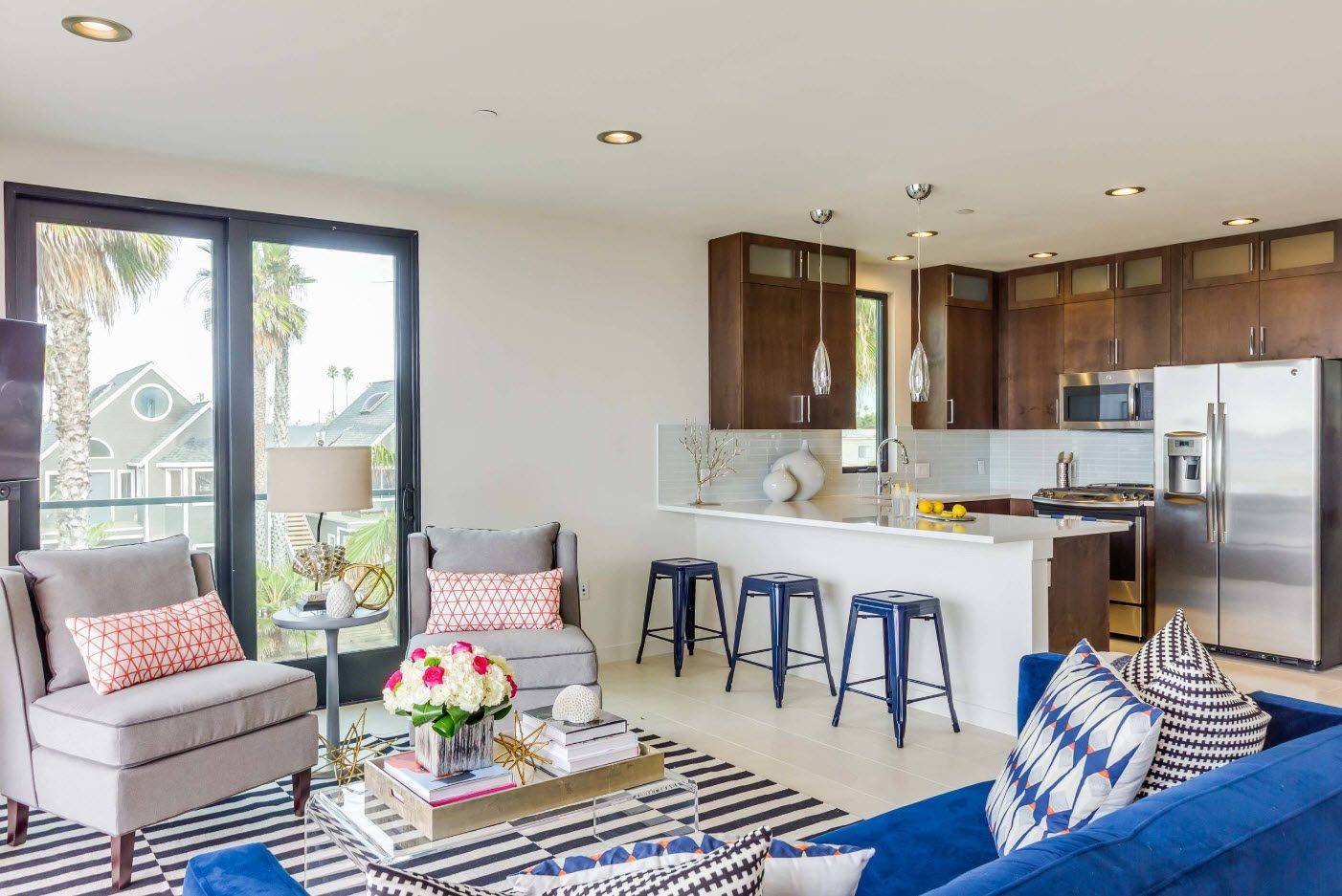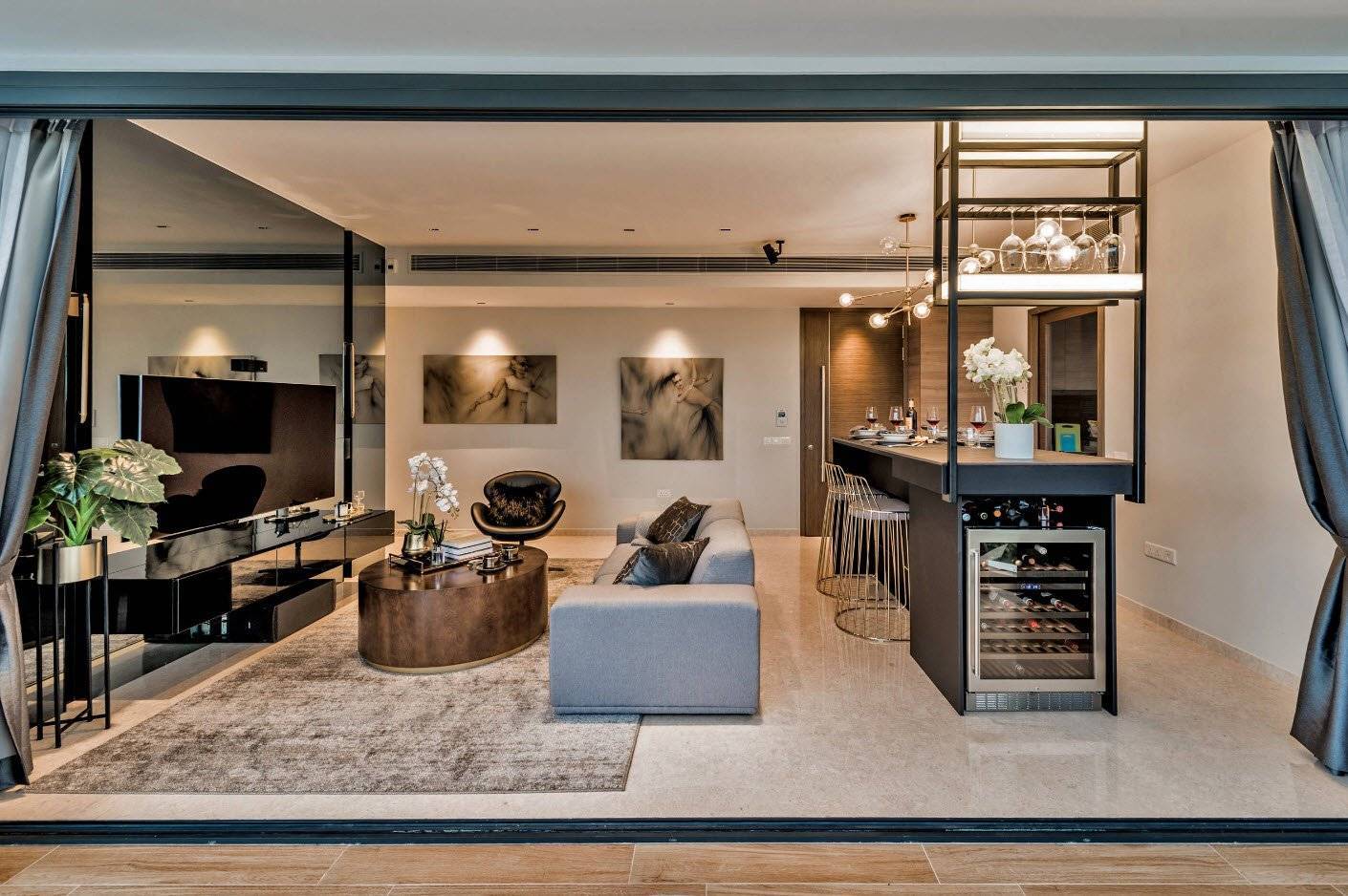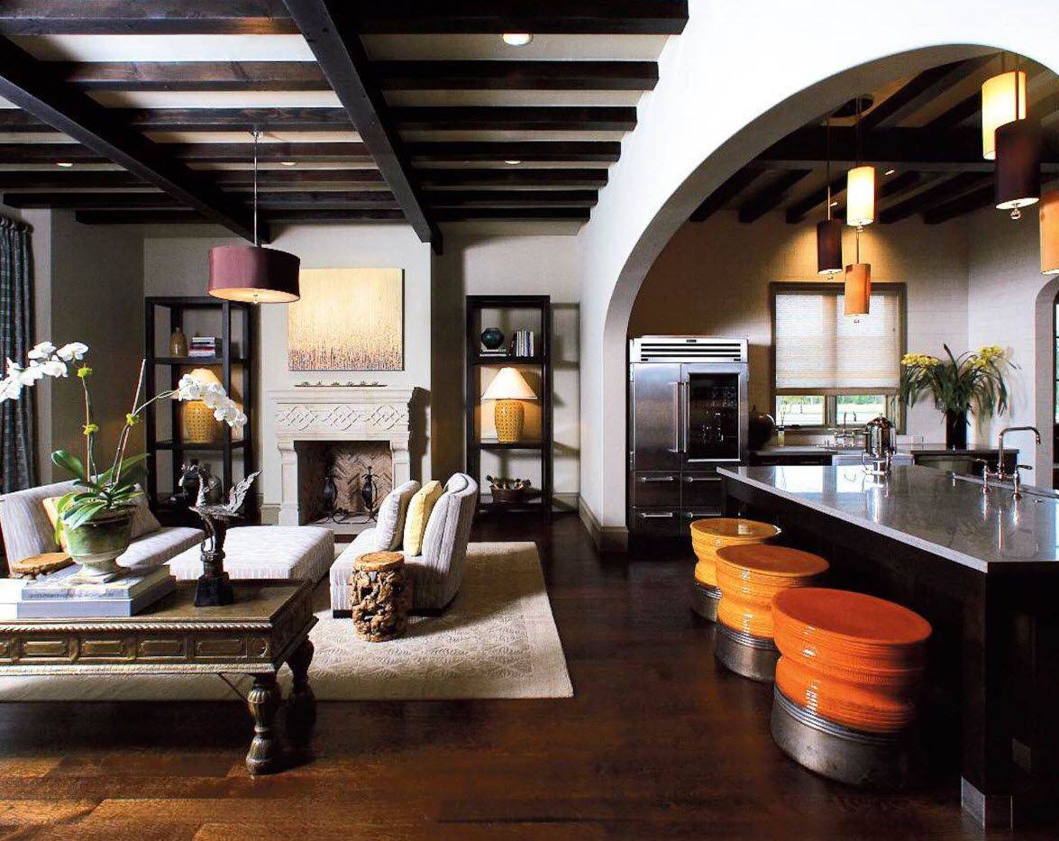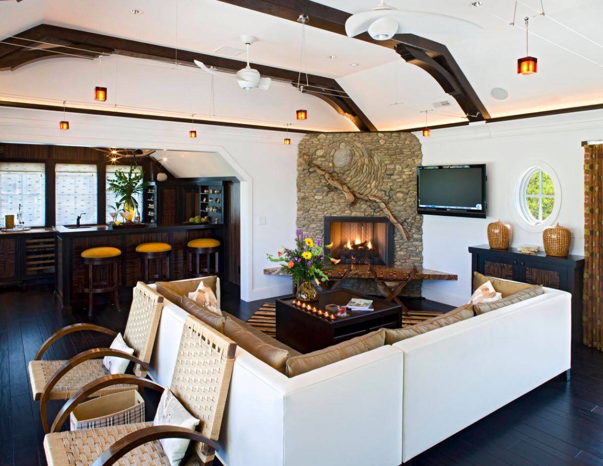 Гостиная с барной стойкой придает квартире совершенно новое предназначение и меняет ее вид, стиль и расширяет возможности дизайна. Сейчас выделяют несколько стилей: