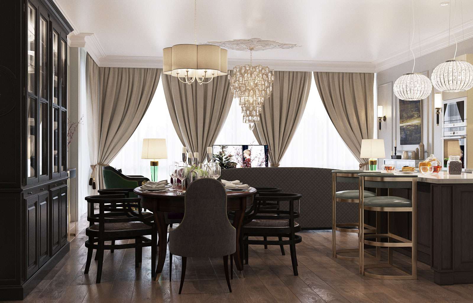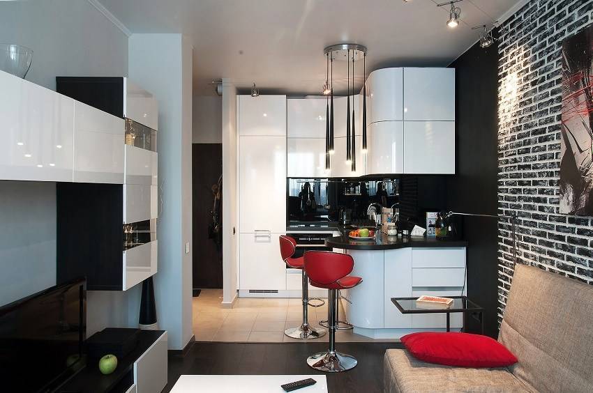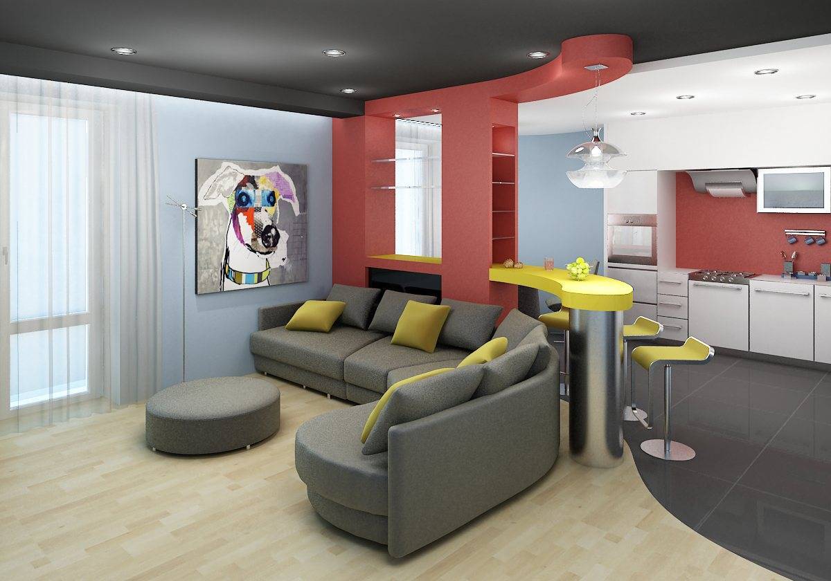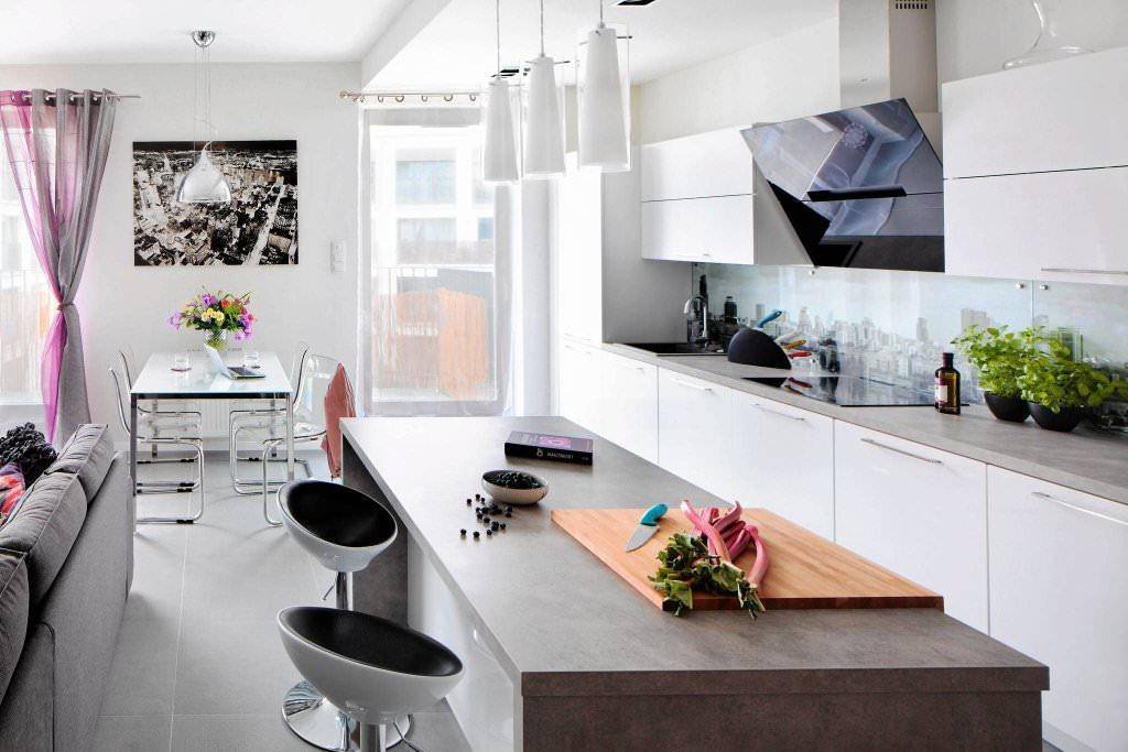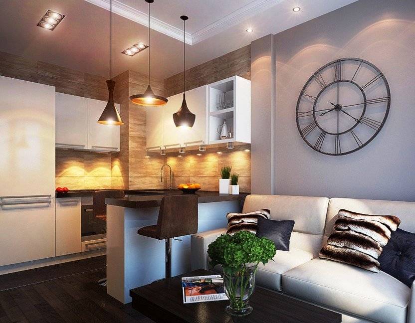 Кухня-гостиная с барной стойкой в разных стилях интерьера