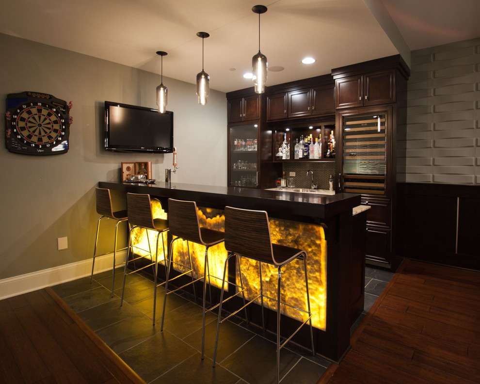 Освещение барной стойки подвесными светильниками