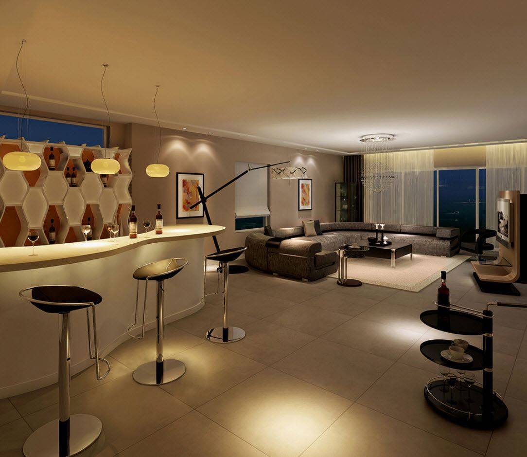 Подбор правильного освещения в гостиной с барной стойкой
