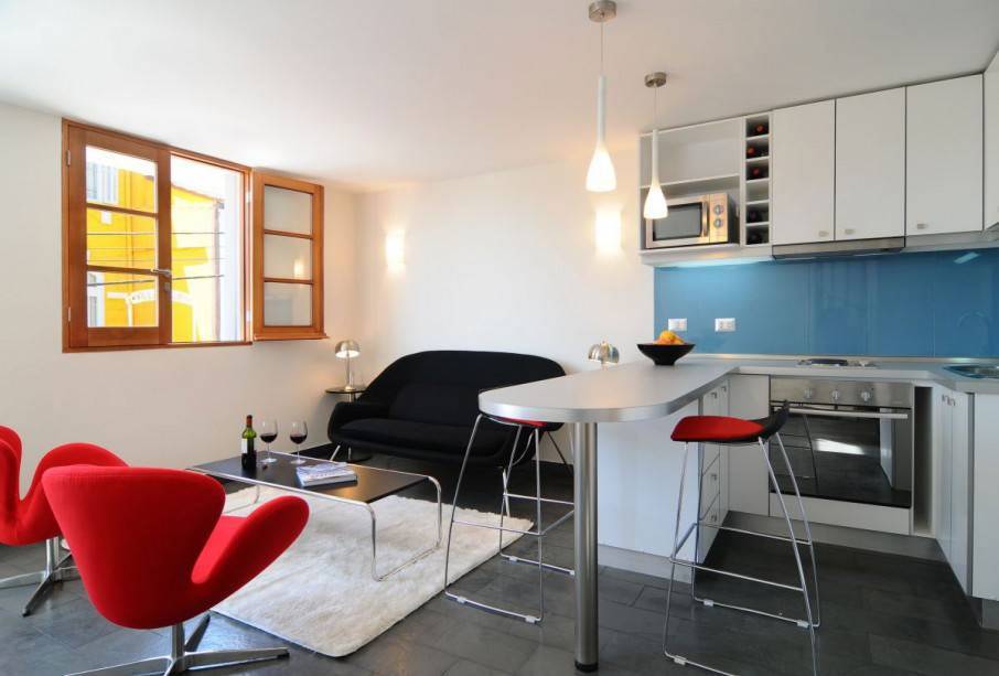 Такая стойка уместна лишь на просторных кухнях, где много свободного места или в квартирах студиях.