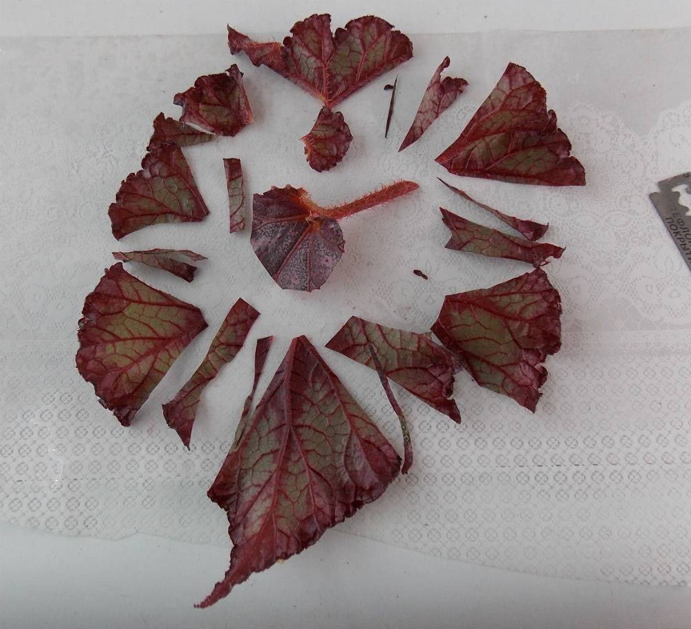 Размножение бегонии Элатиор с помощью листа или черенка выглядит одинаково. Черенкование лучше всего проводить весной или летом, когда растение находится в периоде активной вегетации. Нарезать черенок нужно с верхушечных частей стеблей, он должен быть примерно 8-10 см длиной, с 2 листочками и почками. Срезать черенок нужно под острым углом лезвием или ножом.