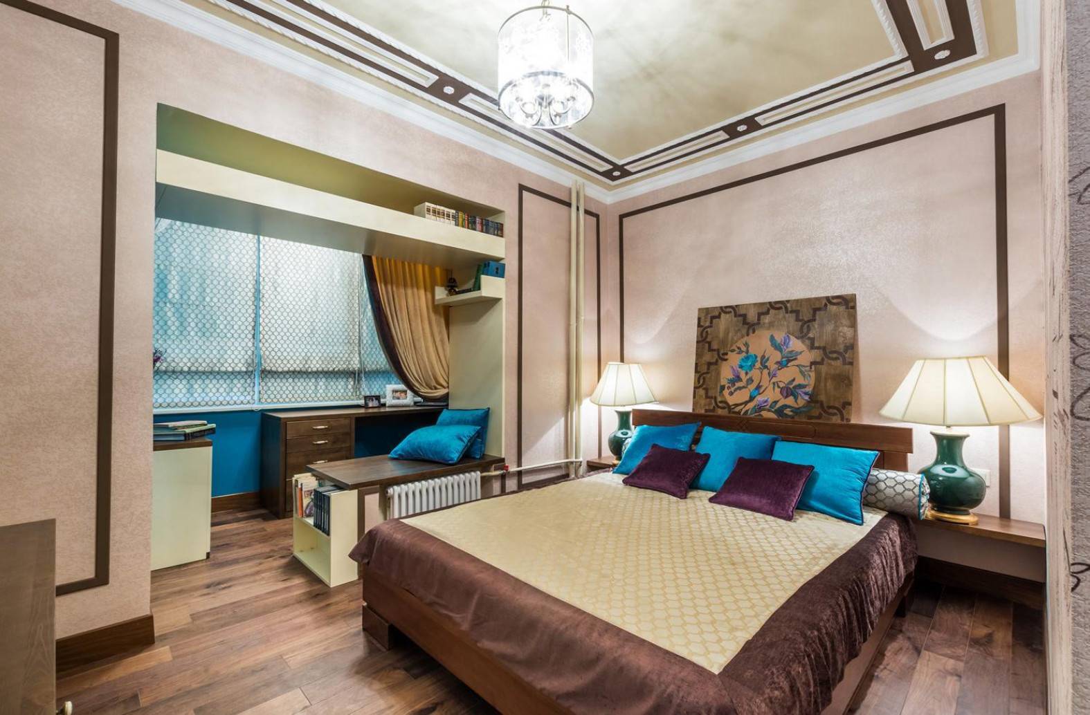 Разноцветный паркет в спальне