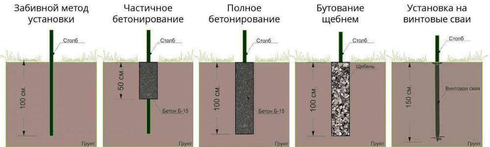 Технология подходит только для устойчивых грунтов и сокращает финансовые расходы на строительство забора. Частичный способ бетонирования воплощается в двух вариантах: