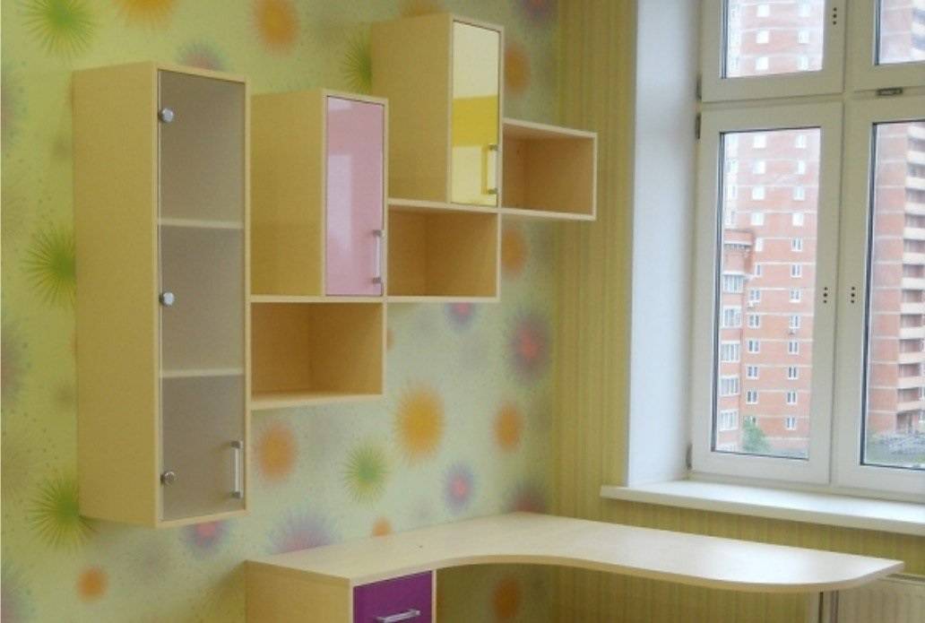 Для учебных принадлежностей можно использовать шкаф и полочки. Последние лучше делать навесными, но не слишком высокими, чтобы ребенку не приходилось каждый раз вставать за чем-нибудь. Такое расположение существенно освободит место. Книжные шкафчики правильнее выбирать с глубокими полками, которые способны свободно вместить много предметов.