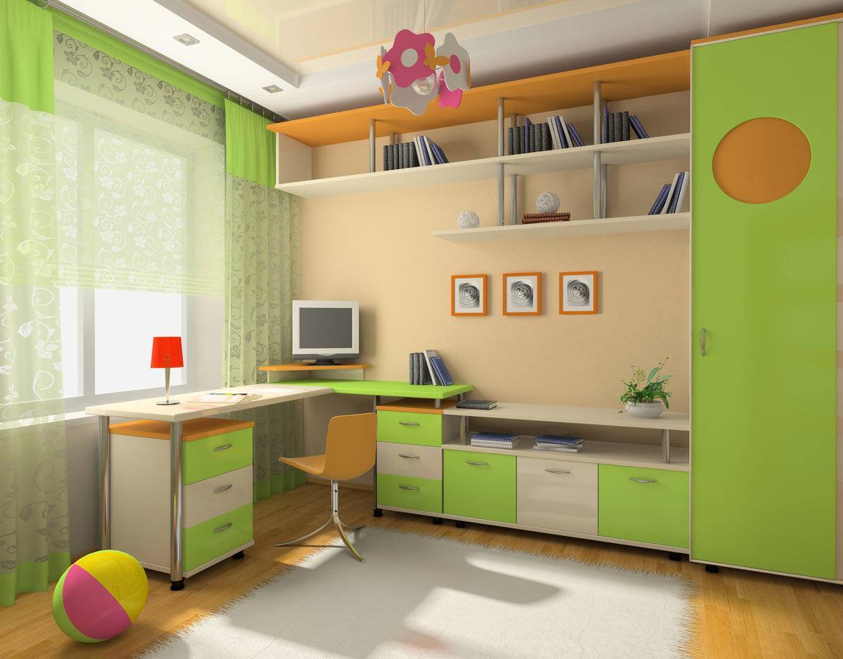 Стоит избегать мрачных темных тонов, нежелателен красный цвет, он возбуждает психику, и синий, который действует угнетающе. Можно сделать яркие акценты в виде подушек, наклеек, декоративных элементов.