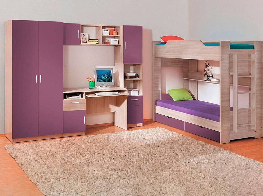 Мебель для детской комнаты включает множество элементов, каждый из которых имеет полезное предназначение. Здесь ребенок учится, занимается творчеством, играет, приглашает друзей и просто отдыхает. О бережной эксплуатации изделий говорить не приходится, поэтому каждый предмет должен надежно функционировать. Обычно комплект мебели в детской состоит из следующих элементов: