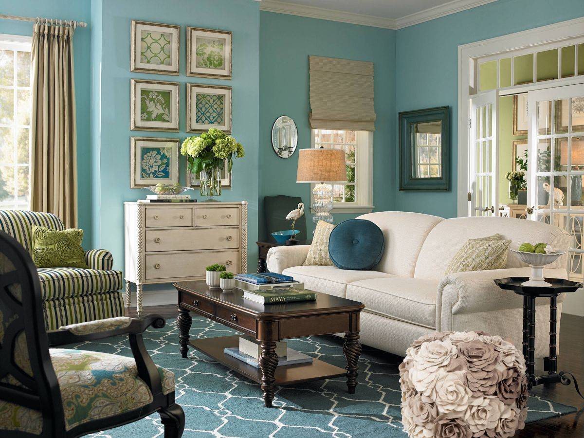 Бирюзовый цвет в интерьере гостиной: оригинальные идеи оформления комнаты
