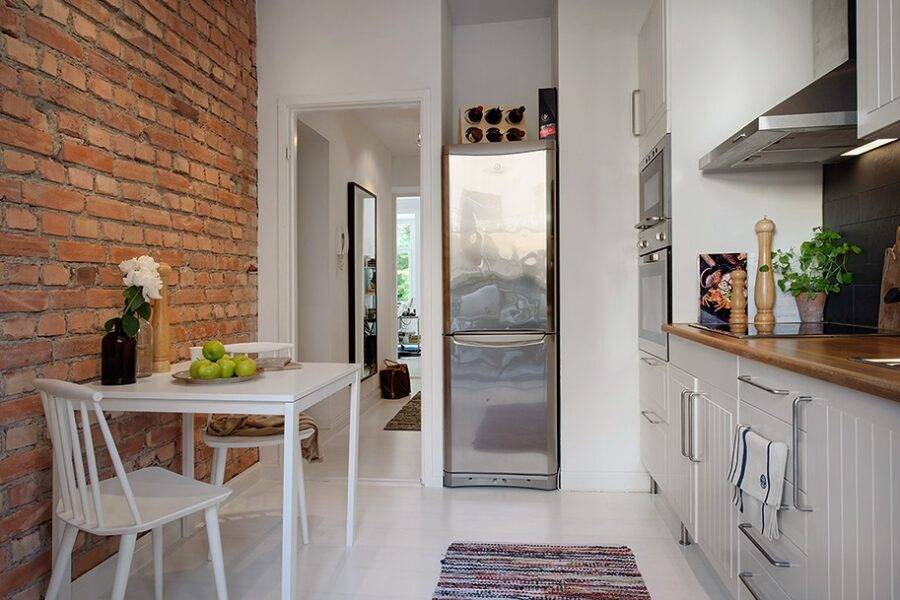Попытка вместить все. Достаточно часто владельцы «мини-кухни» пытаются обустроить в ней и полноценную рабочую зону, и обеденный гарнитур. Желание это похвальное, вот только погоня за двумя зайцами может привести к образования загроможденного тесного пространства. Не лучше ли попытаться вынести обеденный стол за пределы кухни или заменить его на более компактную барную стойку, тем самым освободив в комнате немного места?