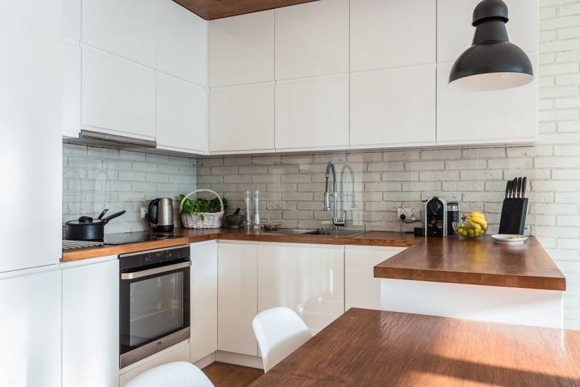 Если есть возможность согласовать перепланировку по присоединению лоджии к площади маленькой кухни, то стоит ей воспользоваться. Так удастся выделить место для обеденной зоны, барной стойки или небольшой зоны отдыха.