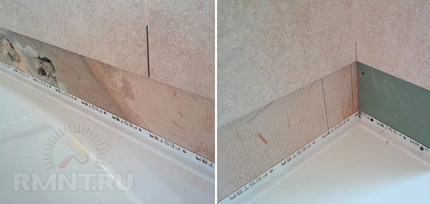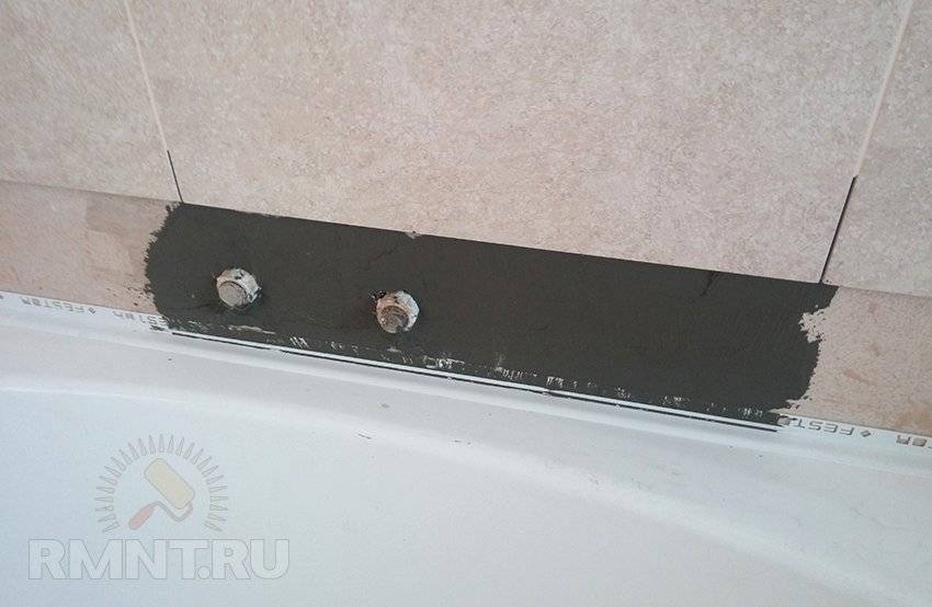 - После отделки стены выполняется установка ванны и герметизация мест ее примыкания к стене (аналогично, как и в выше рассмотренном случае).