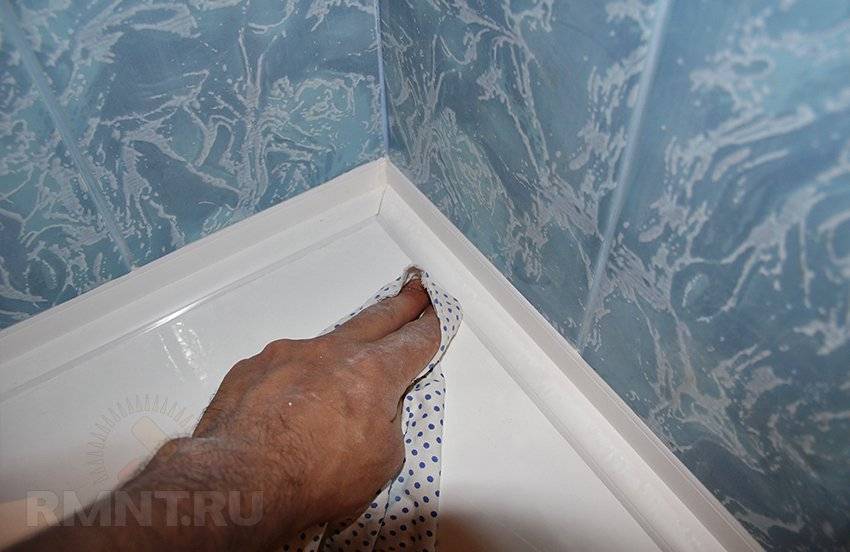 В результате чего плинтус отслаивается в местах крепления. Каждые 4–5 лет рекомендуется снимать фурнитуру между ванной и стеной, чтобы просушить, дезинфицировать и заменить сцепляющий компонент. Чтобы этого избежать: