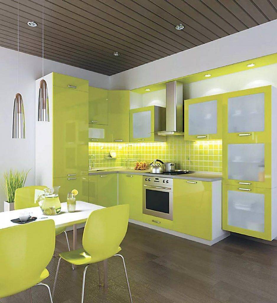 Здесь главное чувство меры. Желтым можно сделать основные детали кухни, например, стены или кухонный гарнитур.