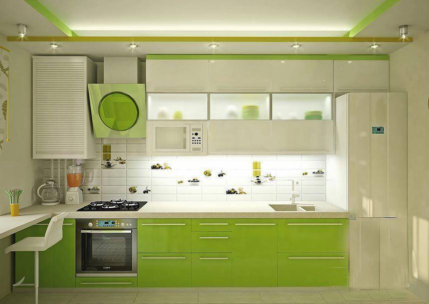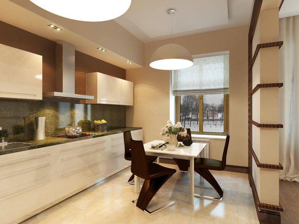Благодаря правильному освещению можно скорректировать геометрию кухни. Узкую кухню исправят светильники, расположенные вдоль одной стены, если же у вас низкие потолки – помогут настенные бра, направленные вверх.Несмотря на все полезные качества правильного освещения, не нужно чрезмерно заливать комнату светом. Также не забывайте об экономии. Используйте светодиодные лампы, они значительно снизят затраты на электроэнергию и прослужат вам значительно дольше, чем лампы накаливания.