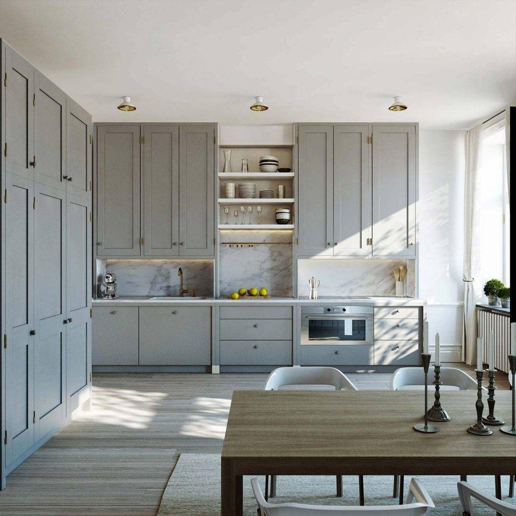Кухонный гарнитур в данном стиле, как правило, имеет гладкие прямоугольные фасады без какой-либо видимой фурнитуры. Покрытие может быть как глянцевым (ПВХ-пленка поверх МДФ, например), так и матовым. Столешницы зачастую изготавливаются из натурального либо искусственного камня, реже применяется массив дерева.