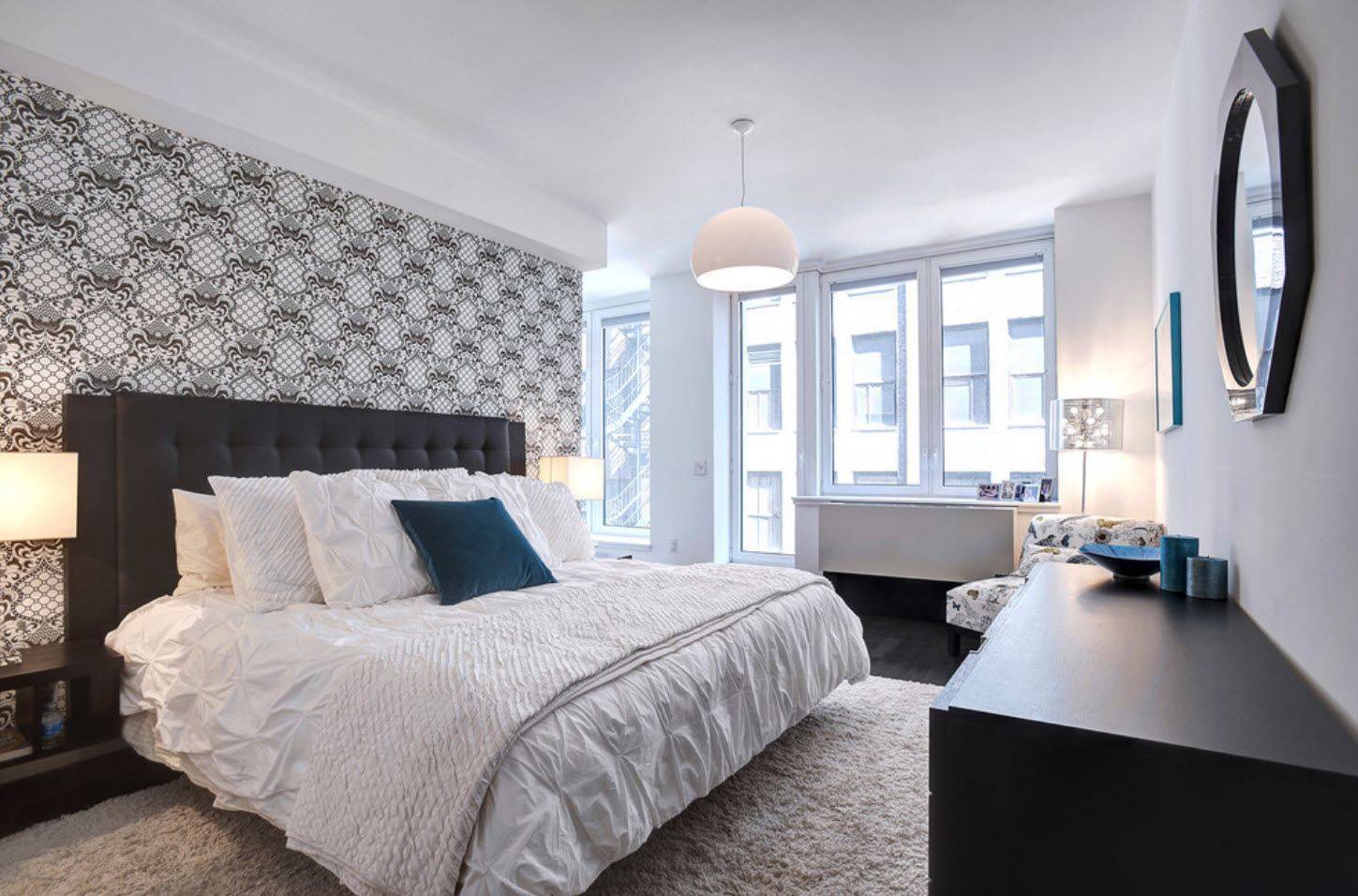 Черно-белые обои в интерьере спальни не редкость. Может показаться, что это цветовое сочетание чересчур агрессивно для комнаты, в которой люди отдыхают и не будет способствовать расслаблению, хотя это не так. При грамотно выборе пропорций, узора и стиля у вас выйдет спокойный, отличный и даже стильный интерьер. Главным правилом является то, что спальню нельзя оклеивать обоями с равным количеством белого и черного цвета. Постарайтесь сделать выбор в пользу одного цвета, причем если вы сделаете упор в пользу черного, то придется продумать сценарий освещения, чтобы комната не была угнетающей и мрачной