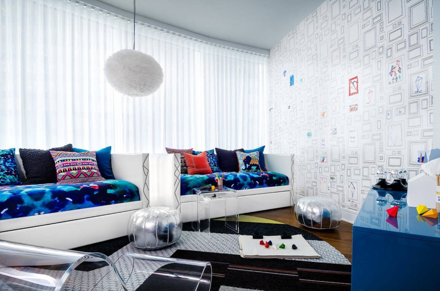 Фото 4. Блестящий перламутровый узор добавляет шика в эту светлую гостиную в современном стиле.