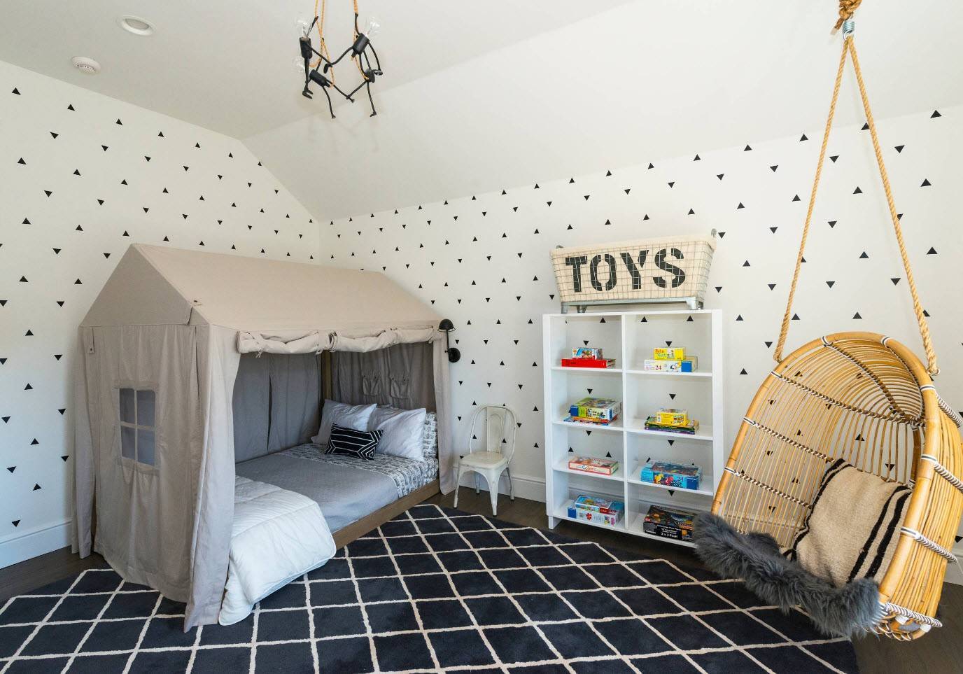 - Детская. Выбор черно-белых стен для детской при существующем буйстве красок и разнообразии сюжетных рисунков выглядит, по меньшей мере, странно.