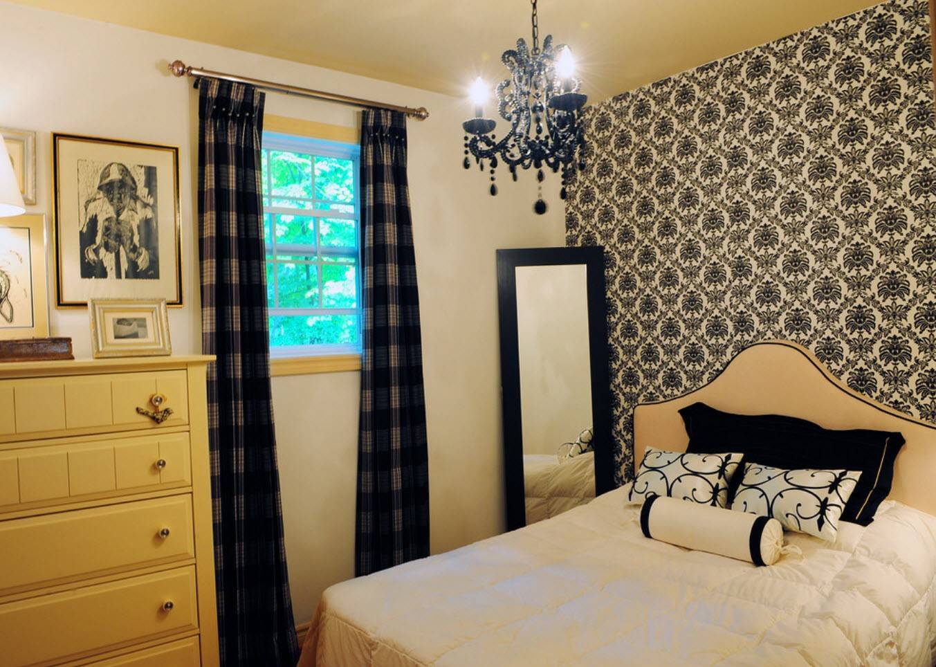Сочетание черного и белого в расцветке обоев рекомендовано для следующих жилых комнат.
