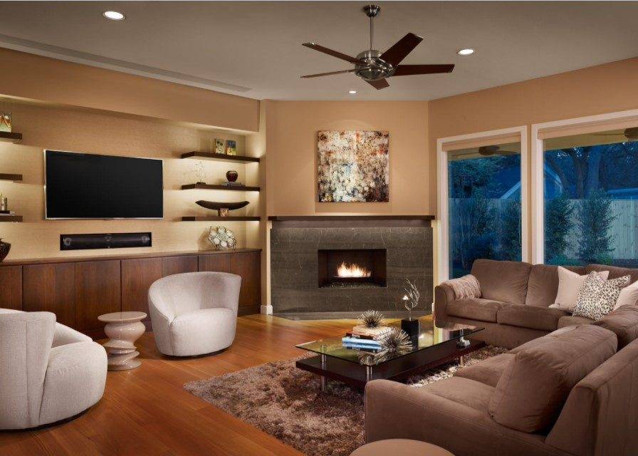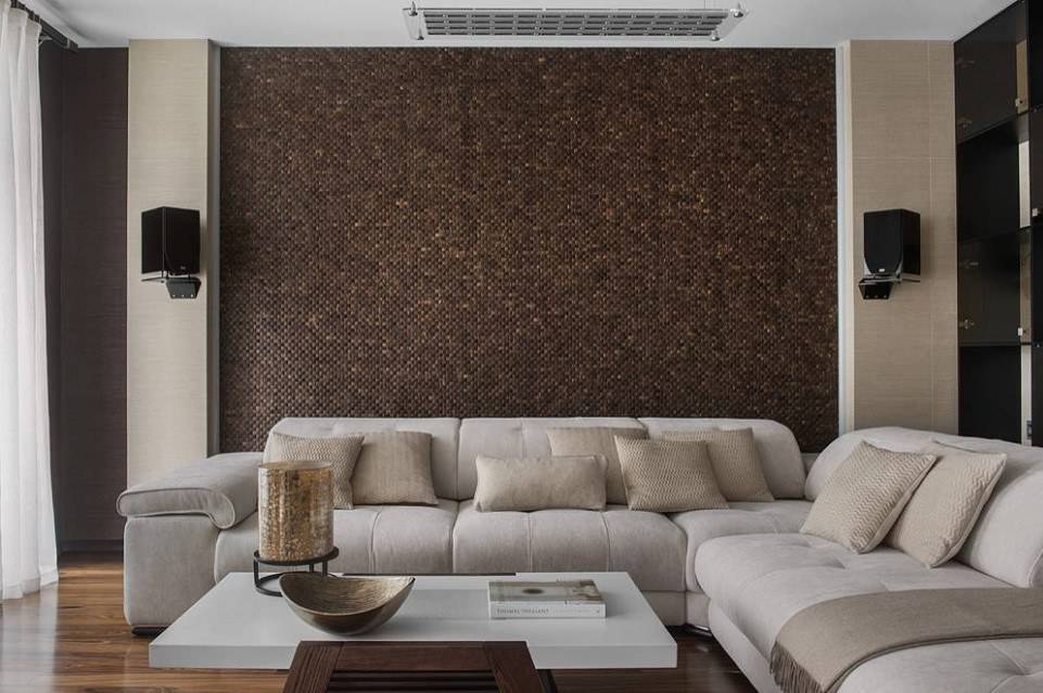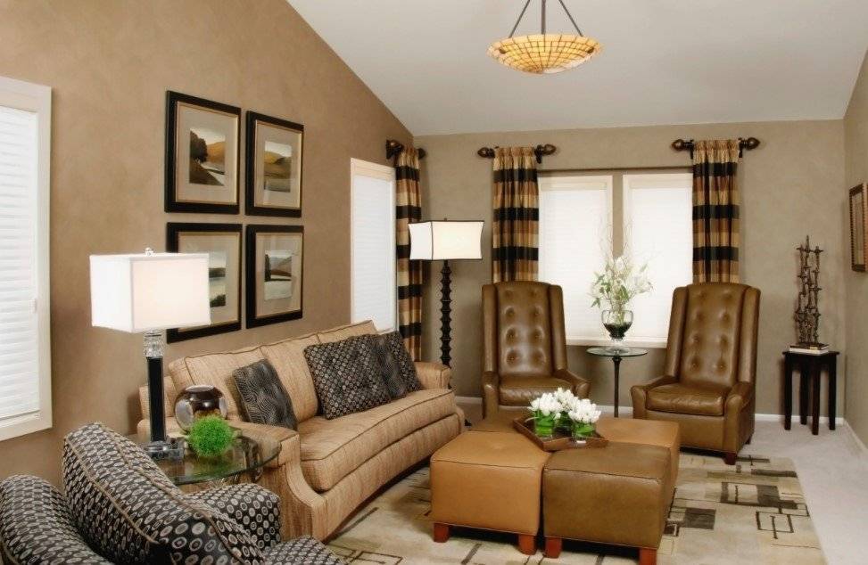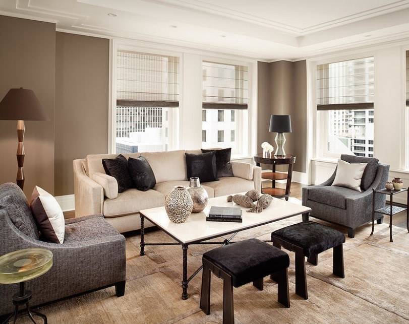 В большинстве случаев помещение гостиной – самое просторное в доме, поэтому здесь можно смело использовать даже самые темные оттенки. Тем не менее, это не умаляет необходимости правильного подбора тонов, чтобы, например, коричневые стены в интерьере не сливались с мебелью, ошибочно подобранной в тон. Темное дерево подчеркнет солидность и консерватизм, современные стили тяготеют к кофейным оттенкам, а несколько ярких акцентов могут разнообразить монохромную гамму.