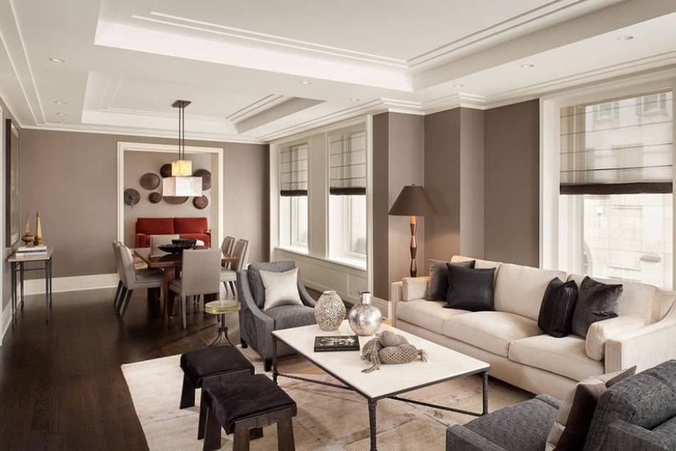 Оформление гостиной может быть в нейтральных, бежевых цветах, с использованием мягких оттенков. Такое цветовое решение сделает интерьер гостиной теплым и уютным.