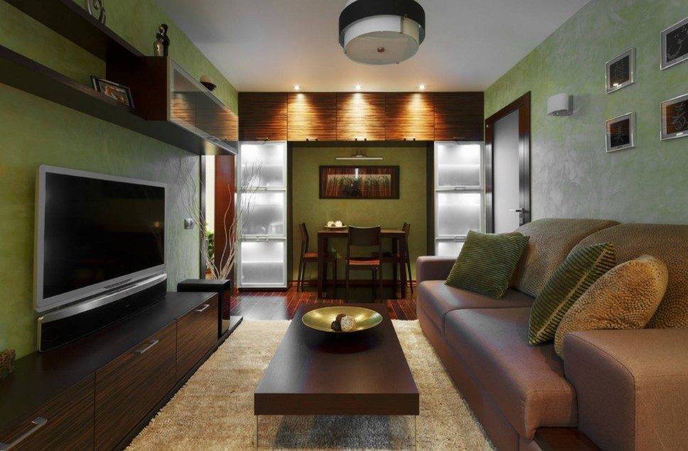 Для небольшой гостиной актуально минимальное использование предметов и аксессуаров в подобном дизайне. Пусть это будет стенка, рамы картин, шторы или подушки на диване. В гостиных с большей площадью можно дополнительно использовать венге в дизайне напольных покрытий и обивке мягкой мебели. Однако не переусердствуйте с количеством цвета и используйте контрастные акценты, иначе интерьер будет смотреться слишком тусклым и угнетающим.