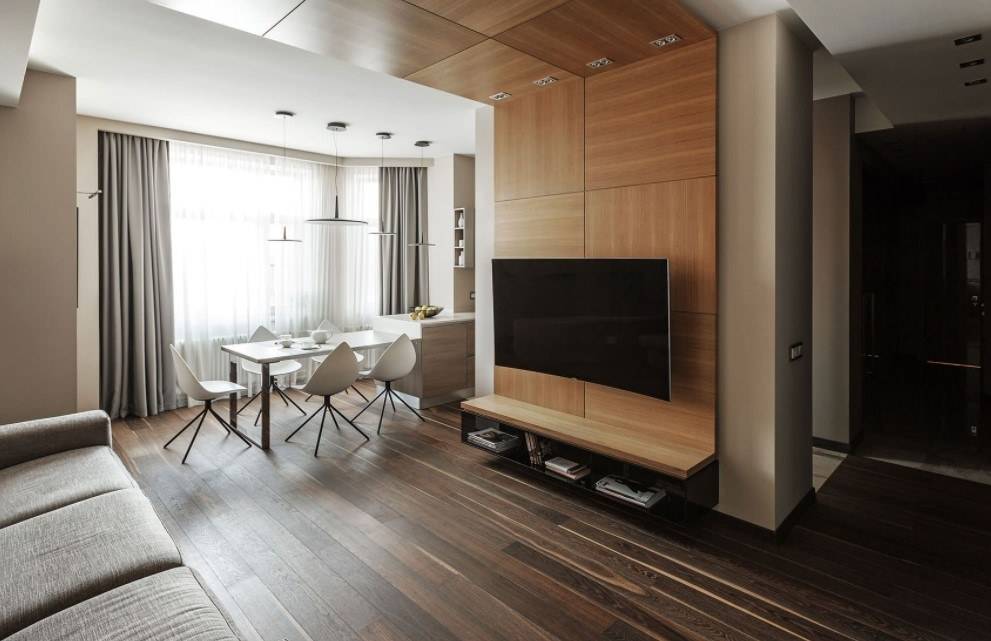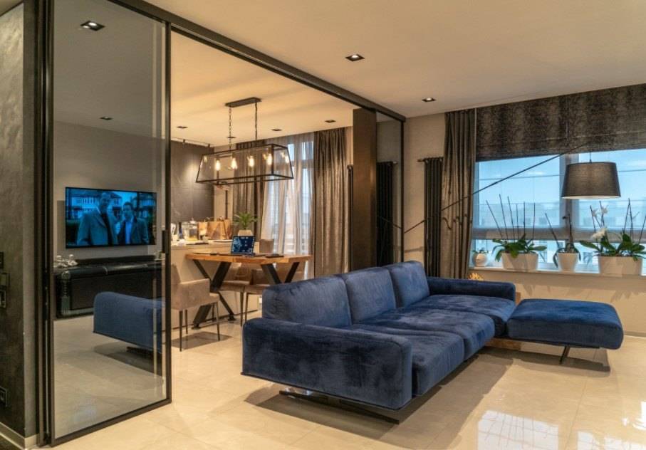 Интерьер современной гостиной маленького размера чаще объединяют несколько комнат в одну и разграничивают на зоны с помощью мебели, колонн или перегородок.