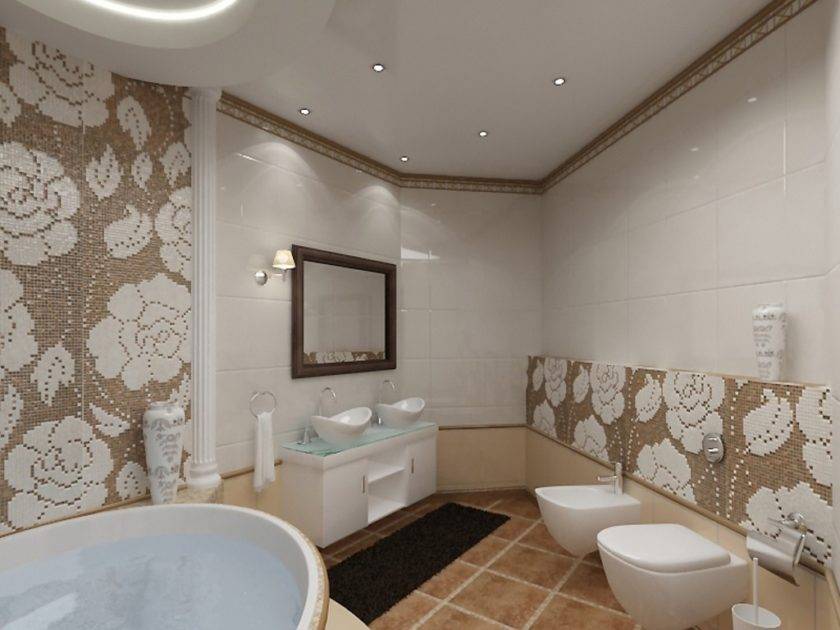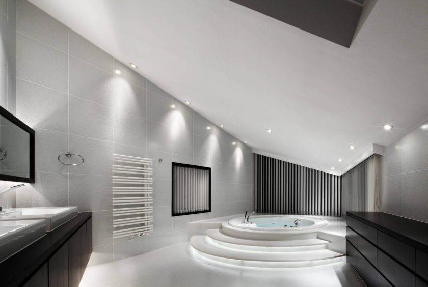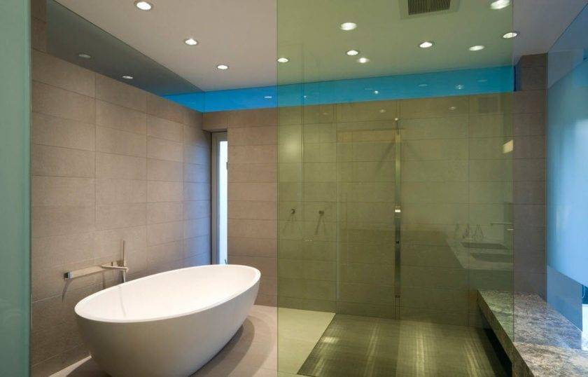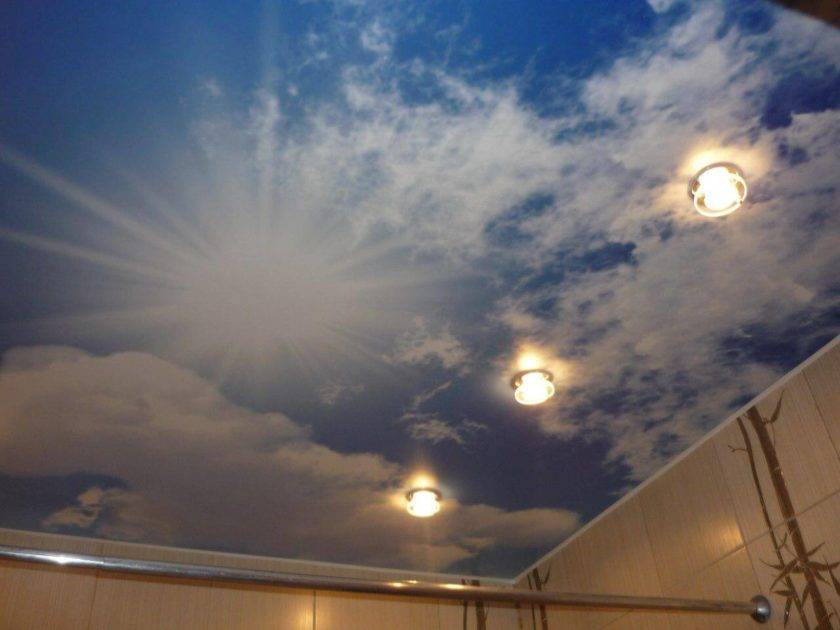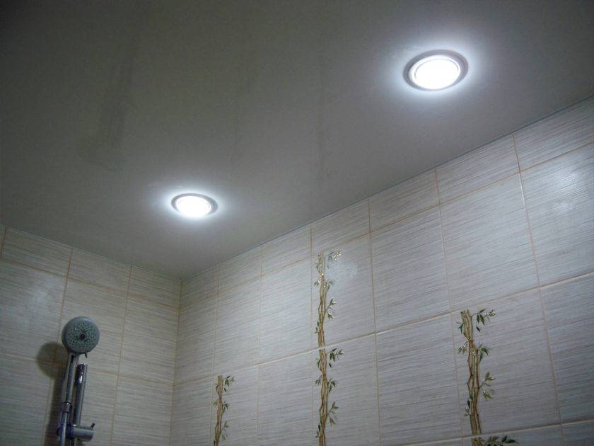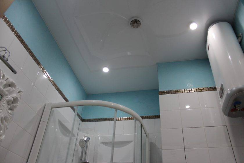 Цвет потолка должен подходить к дизайну ванны и хорошо смотреться при любом освещении.