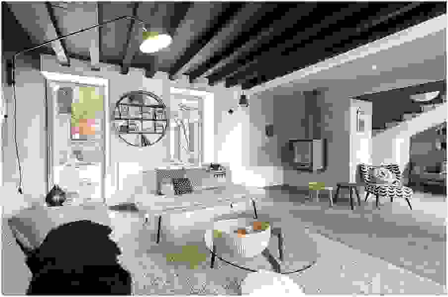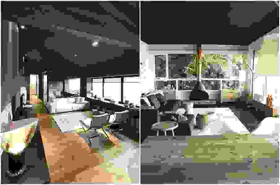 Холодность бетона смягчает пушистый ворс ковра, мягкость и воздушность диванных подушек и природную красоту комнатных растений