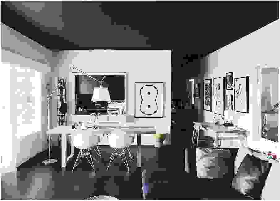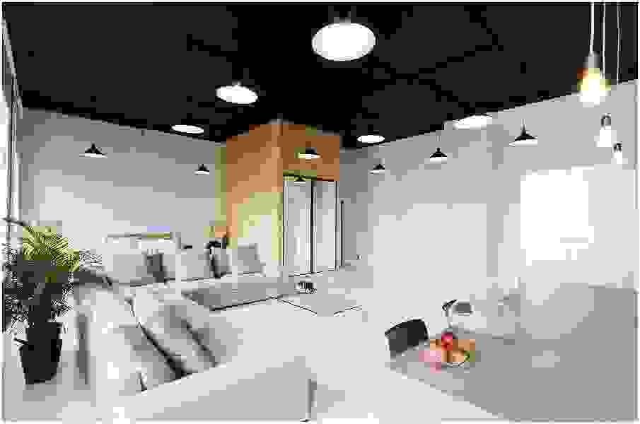 Контрастное сочетание чёрного потолка и белых стен в современных апартаментах