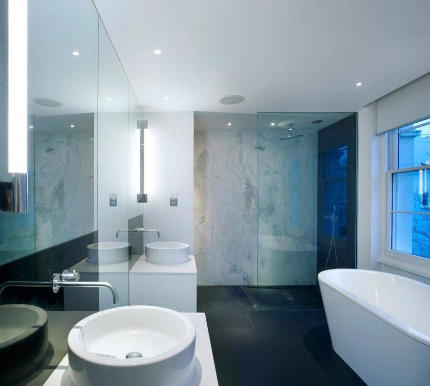 Так же дизайнеры не советуют в ванных комнатах маленькой площади применять освещение теплых тонов.