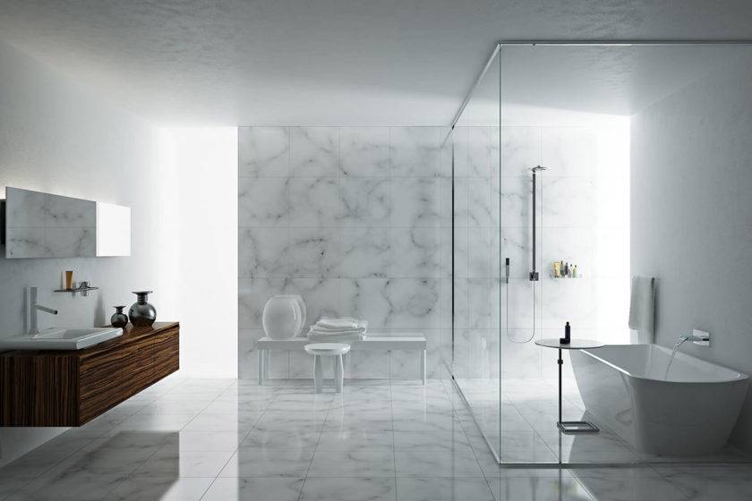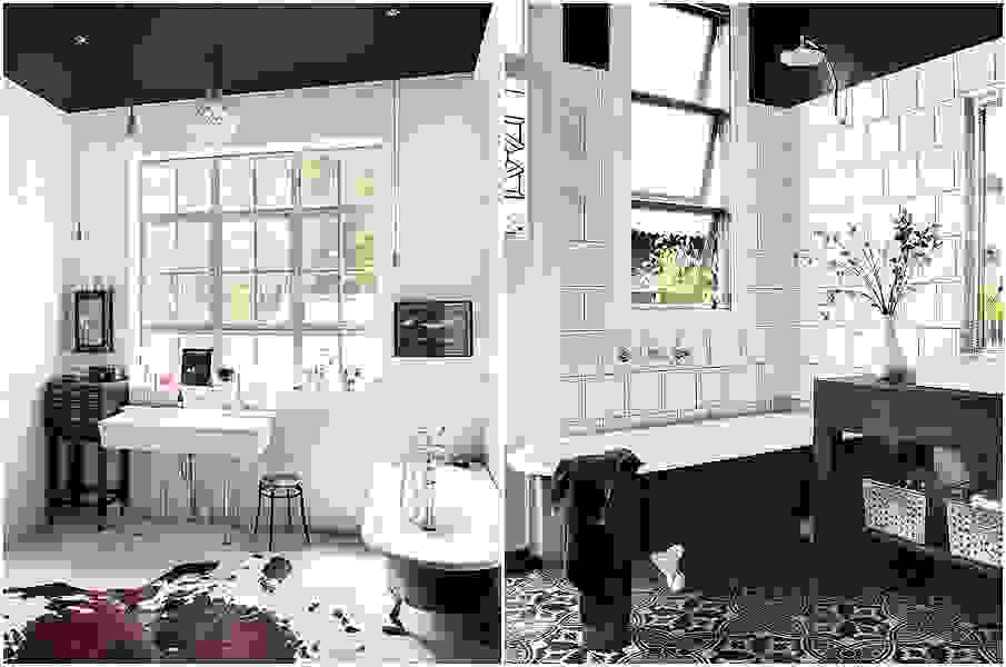 Ванная комната. В небольшом помещении следует отдавать предпочтение белому и разумно дозировать темный тон. Комната должна казаться просторной.