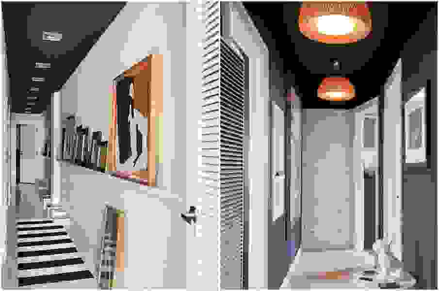 Яркие аксессуары сглаживают излишнюю строгость чёрного потолка