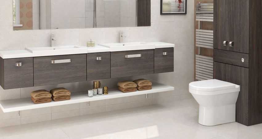 Самая популярная группа среди мебели для маленьких ванных комнат — это та, которая установлена под раковиной. Кроме того, вы можете выбрать шкафы, стоящие и висящие в виде колонны или комода. Производители предлагают наборы мебели с санузлом, представляющие собой идеально скоординированный дуэт и дающие возможность составить собственные композиции в рамках данной серии.