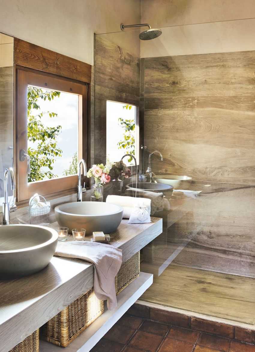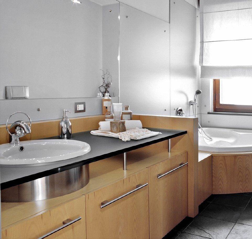 В случае мебели покупатели часто выбирают имитацию дерева. Может ли древесина присутствовать в ванной комнате? Конечно, она является более дорогим вариантом отделки, но нет никаких противопоказаний к использованию одного из самых древних видов сырья в этой части дома