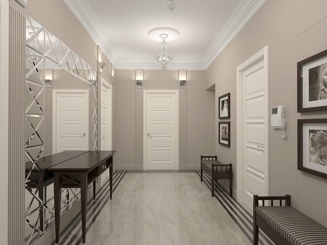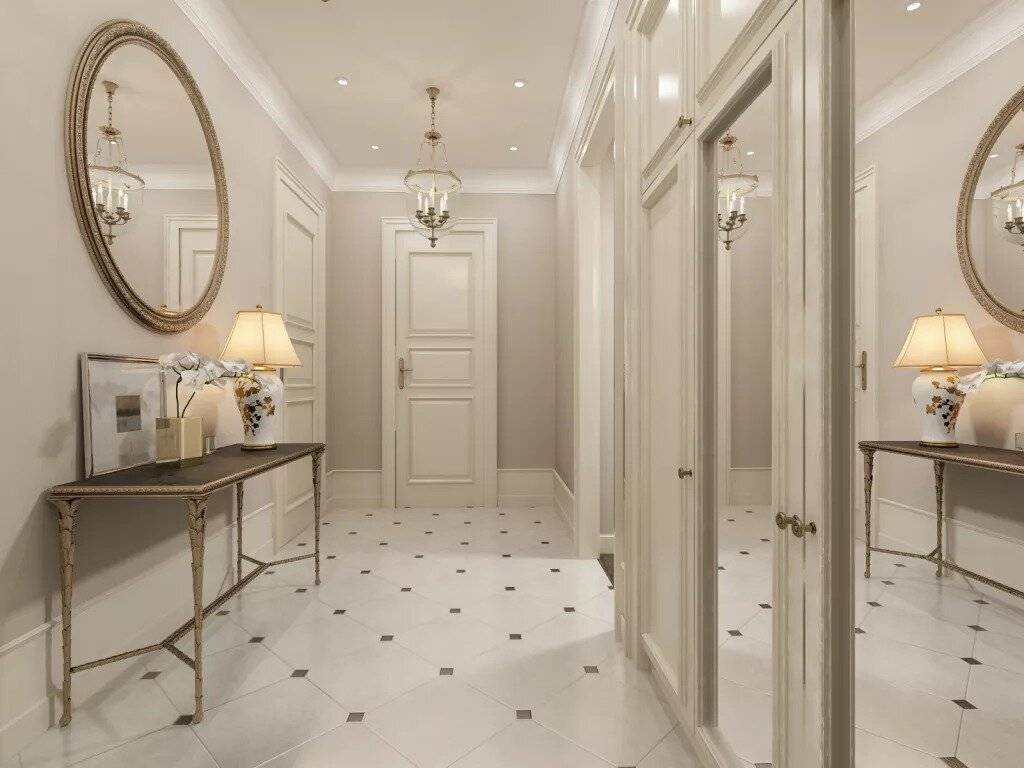 Классика актуальна, несмотря ни на что. Конечно, такое роскошное оформление коридора в квартире больше подходит для больших комнат. Но вы можете обыграть его и в маленькой прихожей. Для этого используйте: