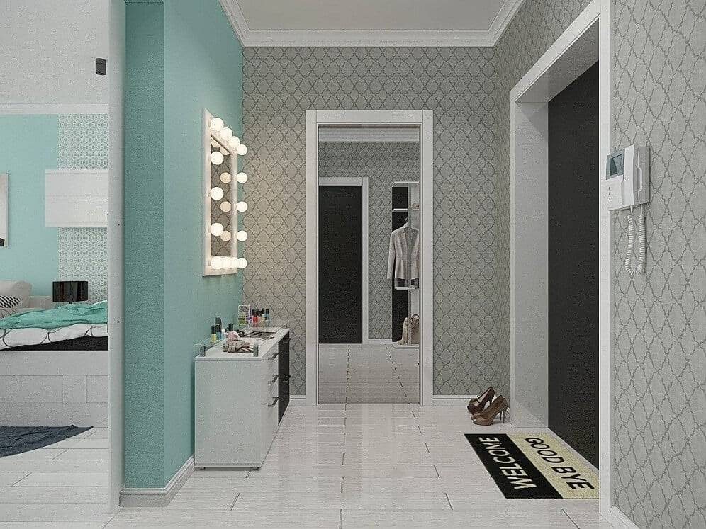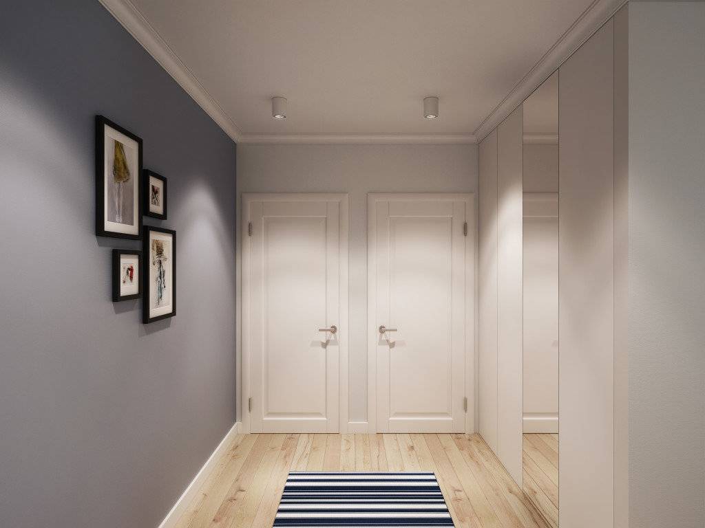 - Используйте светлые тона в отделке коридора. Это может быть светло-серый, белый или голубой оттенок.