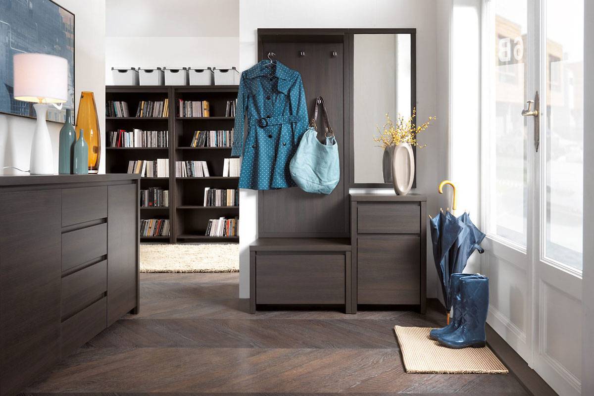 Выбор мебели. Колористическую гамму мебели и дверей также необходимо выбирать исходя из сочетаемости цветов. Светлые шкаф и обувница будут уместны в прихожей, насыщенной красками. И наоборот, темную мебель лучше поставить в прихожую со светлыми стенами.