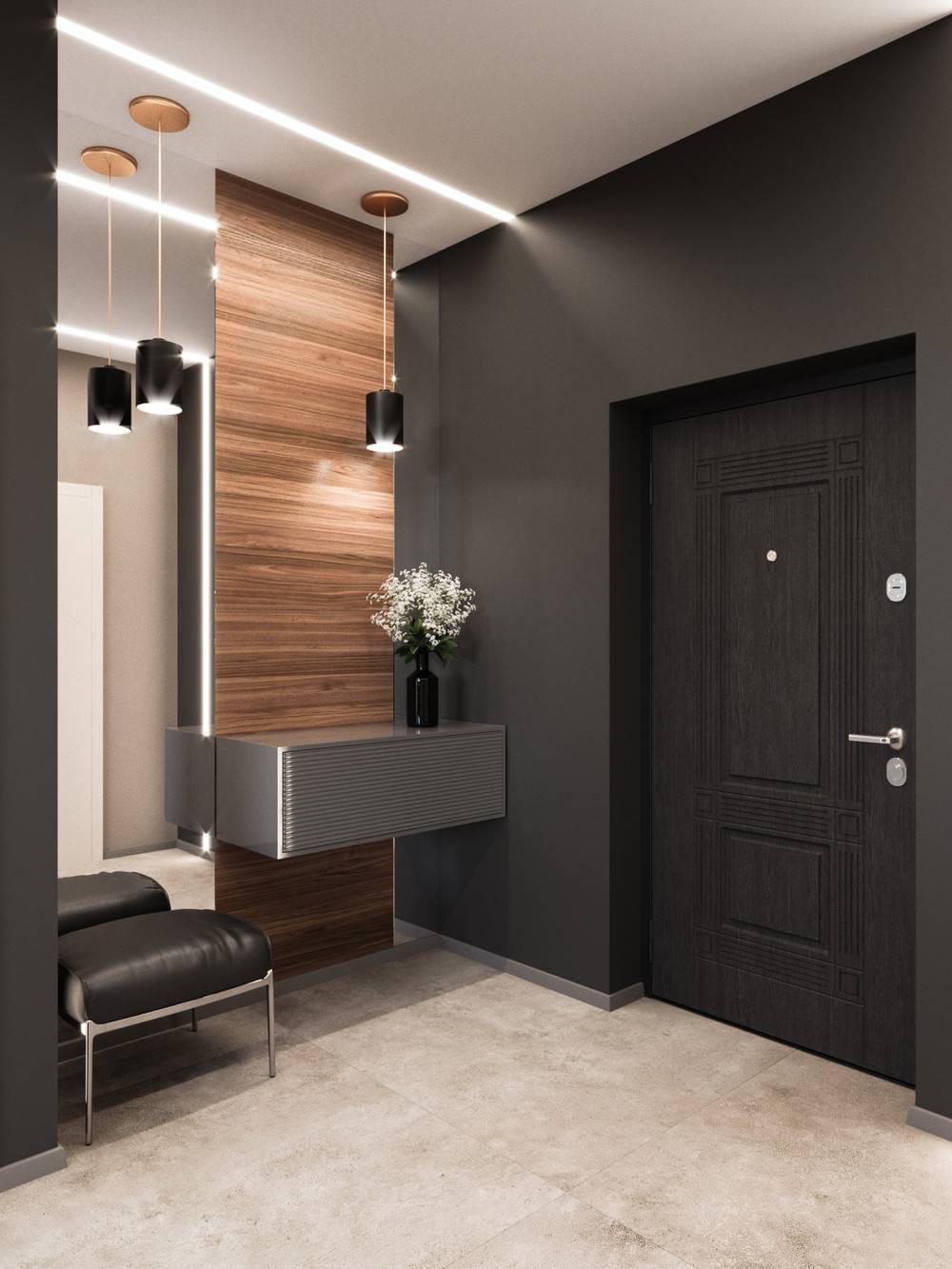 Отлично сочетается с контрастно-темными мебелью и декором, добавляя прихожей респектабельности и привлекательности.