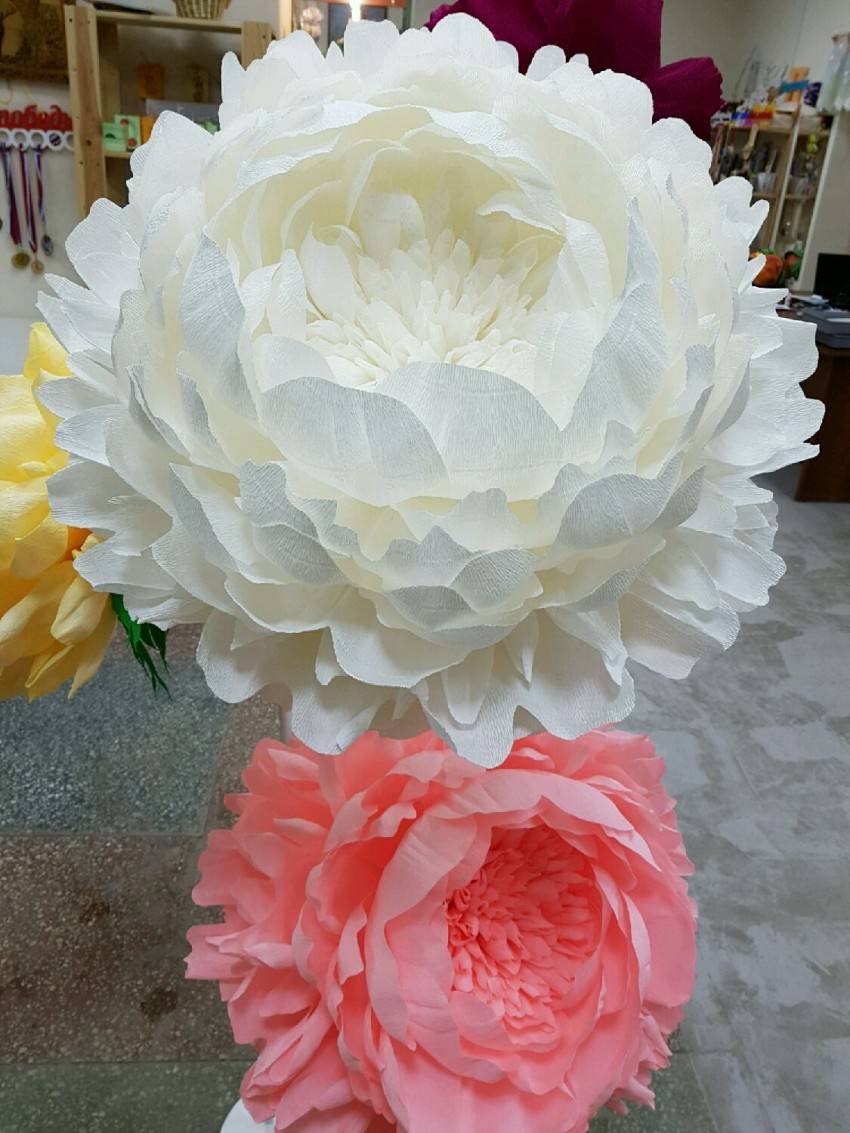 Нет точной науки, как сделать ростовые цветы из бумаги своими руками. Просто делайте то, что подходит для вас. Но, с чего-то надо начинать, воспользуйтесь этим уроком, как руководством к действию. Список материалов, рекомендации, подробную инструкцию, все это вы можете прочитать на сайте, ссылка находится под галереей. Самая сложная часть, закрепить цветок на стойке, здесь может быть несколько вариантов: