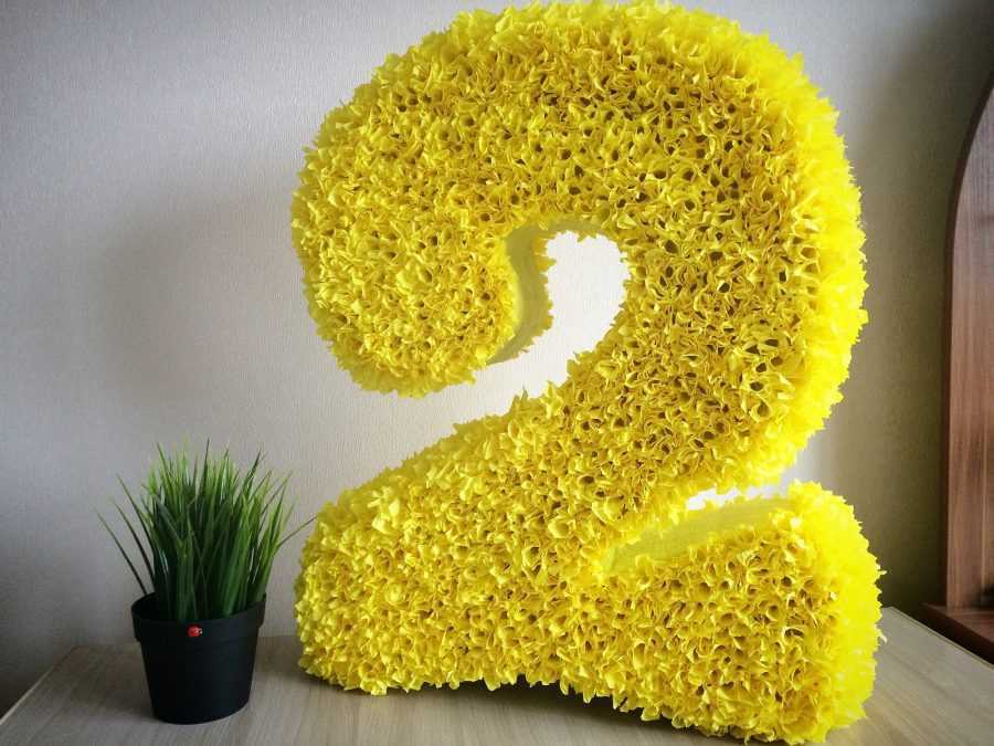 Огромные цветы можно сделать даже из салфеток. Вам понадобится одна упаковка из 8-10 салфеток основного цвета и 4 салфетки для центральной части. Для каждого большого цветка из салфеток требуется один куска цветочной проволоки и скотч. Было бы полезно иметь под рукой лист ватмана для создания шаблонов. Изготовление цветка не займет много времени, как это сделать, написано в подробной инструкции на сайте. Также вам помогут пошаговые фото ниже в галерее.