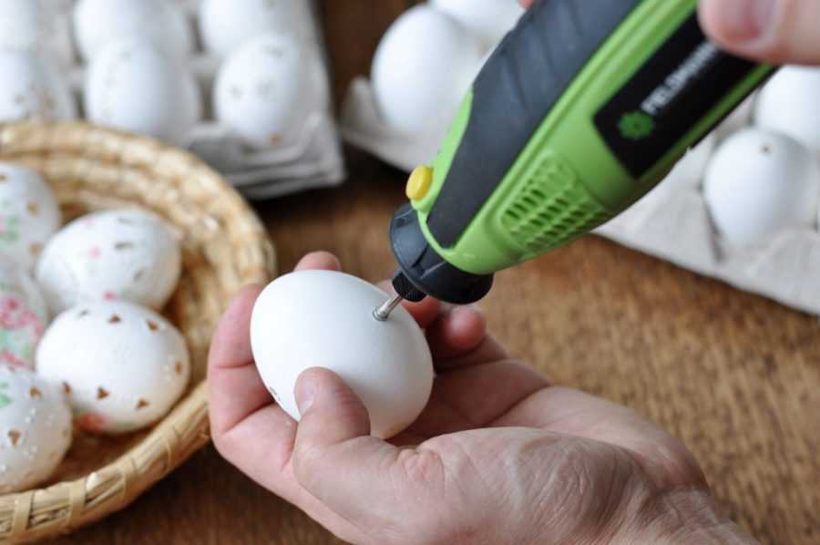 - Если требуется цельная скорлупа, сначала необходимо выполнить 2 отверстия в яйце с противоположных сторон, через которые извлечь белок и желток.