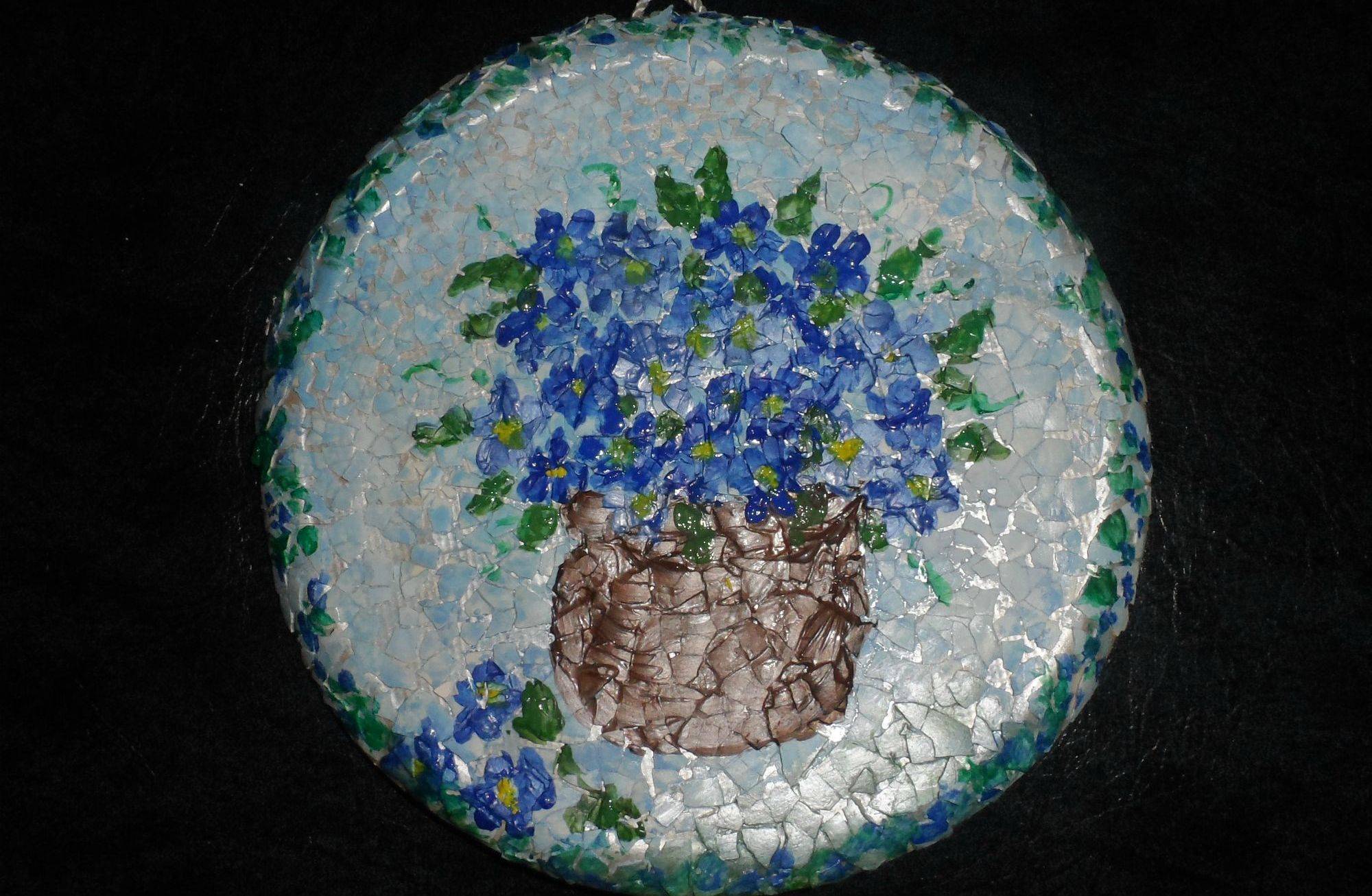 Чтобы получить эффект мозаики, обезжирьте поверхность, нанесите грунтовую основу и краску. Нарисуйте эскиз карандашом на изделии. Скорлупу покрасьте акриловыми красками и нанесите по контуру рисунка. Для этого подходит также клей ПВА. Для простоты ухаживания за работой, покройте глянцевым лаком. Шедевр готов!