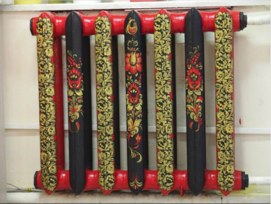 Довольно оригинально выглядит роспись красками на радиаторе отопления.